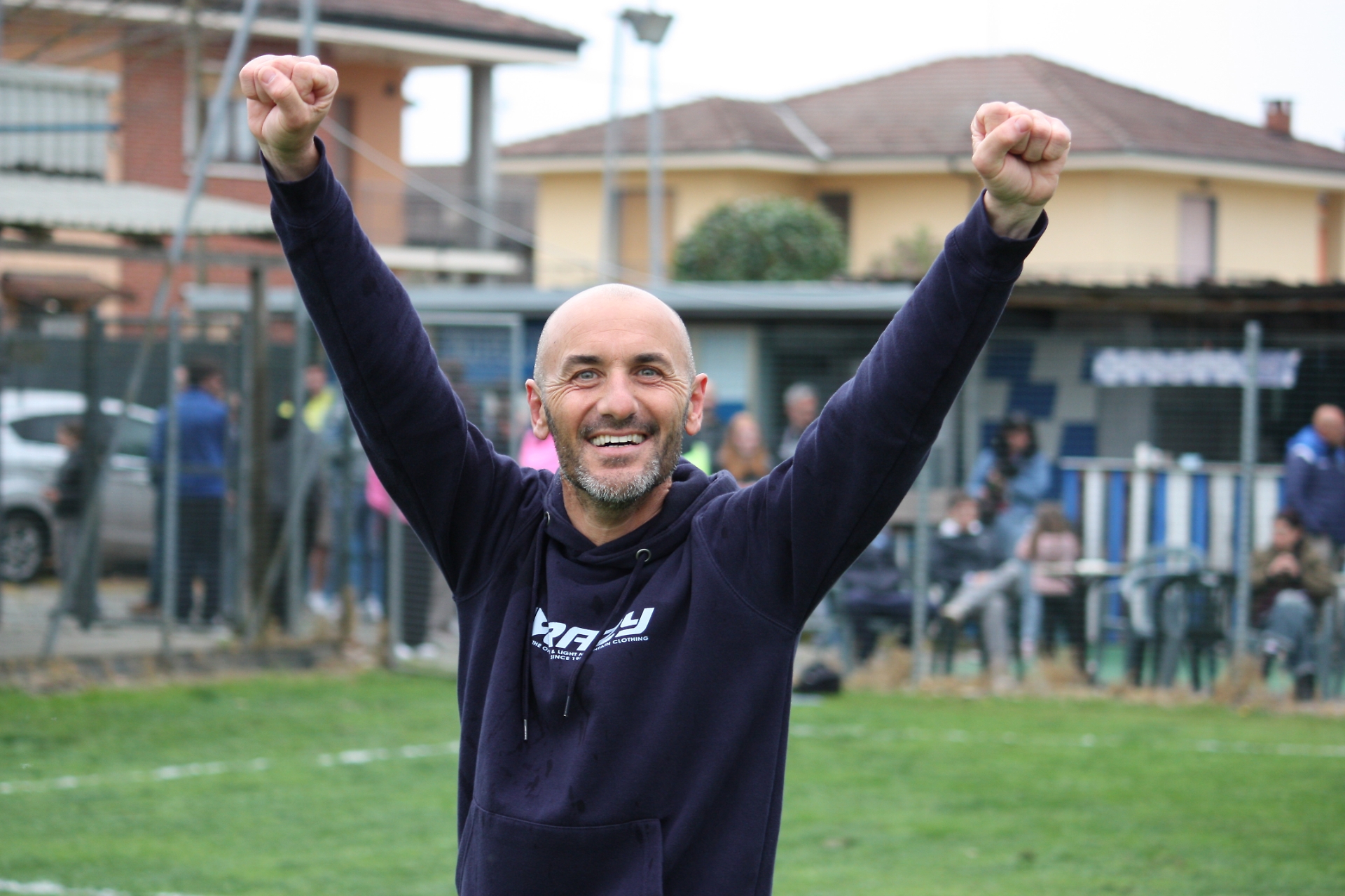 Dicevamo del contrasto di tutto questo bendidio con il contesto. Perché a Polonghera, ai confini della Provincia, ci sono un freddo ed un grigiore fuori stagione; il terreno di gioco, situato dove finisce il paese e iniziano le coltivazioni, ha l’aspetto di quelli tipici delle categorie inferiori, con i pali delle porte arrugginiti e l’erba leggermente alta e punteggiata di margherite e fiori di tarassaco; al di là della recinzione un braccio meccanico movimenta balle di fieno; e dai tre gradoni della tribuna, costruiti a ridosso della linea laterale, i ragazzi del posto, bicchieroni di birra in mano, ringhiano di continuo verso l’arbitro e gli avversari. Queste le condizioni ambientali che attendono il Bisalta nello snodo cruciale dell’annata, nulla di strano ci sarebbe se i rossoblù accusassero qualche difficoltà.