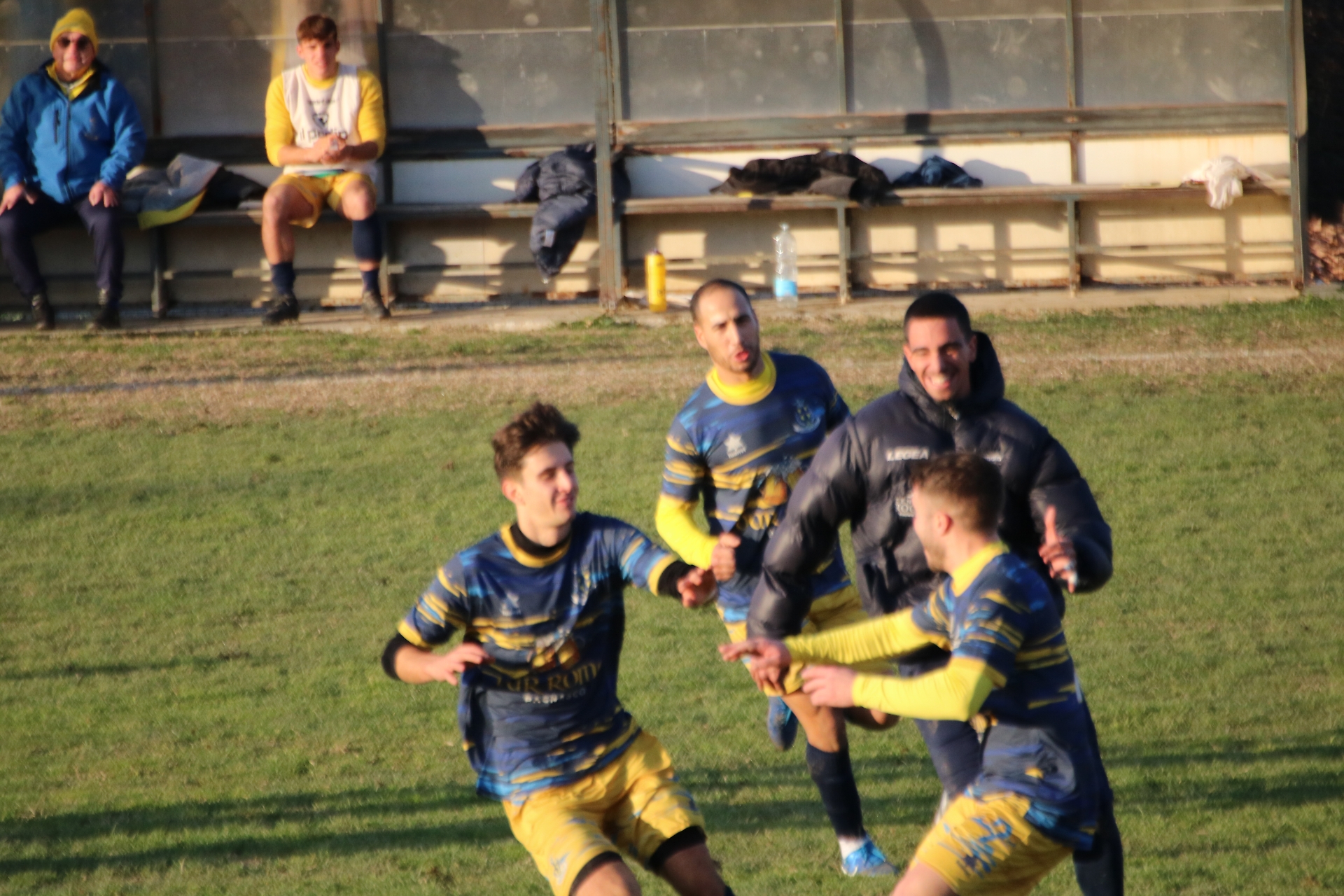 Esultanza biancorossa dopo il gol decisivo di Di Salvatore nel match d'andata a Fossano