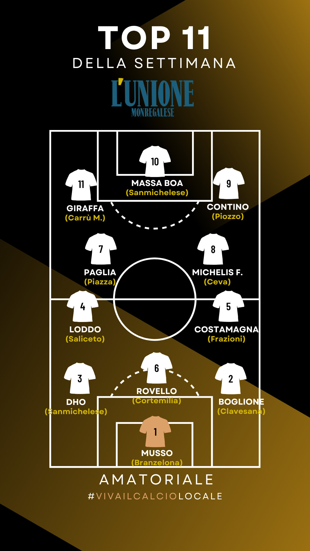 SANMICHELESE. De Filippi, Ansaldi, Rachita, Costa, Donghi, Gandolfi, Briatore R., Canavese, Dho, Preci, Massa Boa. (Rovella, Briatore L., Mondino). All. Ansaldi