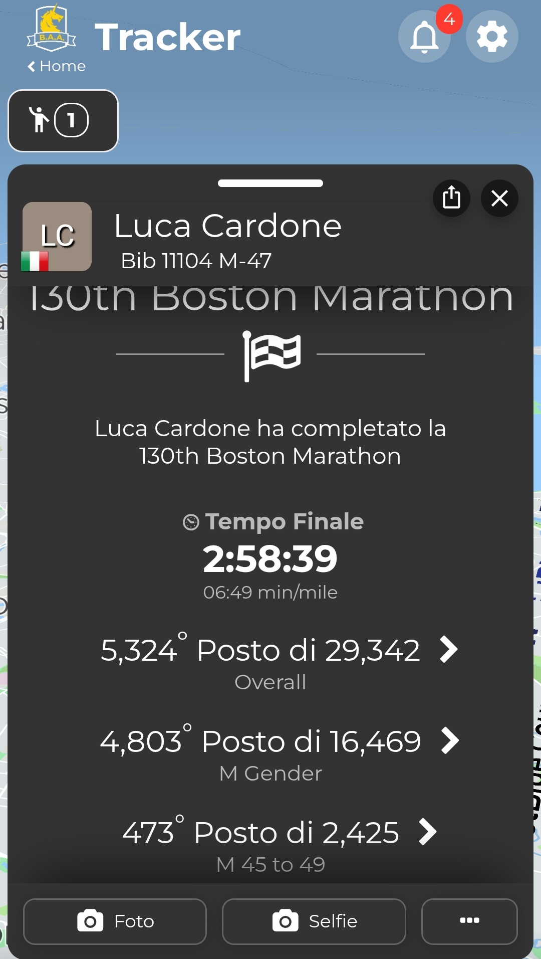 Ha abbattuto il muro delle tre ore, il traguardo simbolo per ogni maratoneta. E lo ha fatto in una delle gare più prestigiose al mondo, la Maratona di Boston. Protagonista dell’impresa è Luca Cardone, 47enne di Piozzo, tra i 395 italiani al via lunedì scorso negli Stati Uniti e nel ristretto club dei 60 connazionali capaci di chiudere sotto le 3 ore.