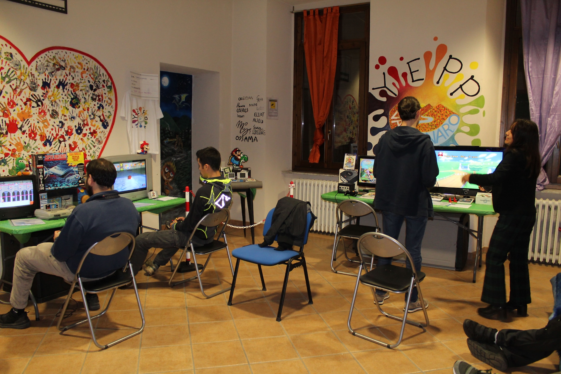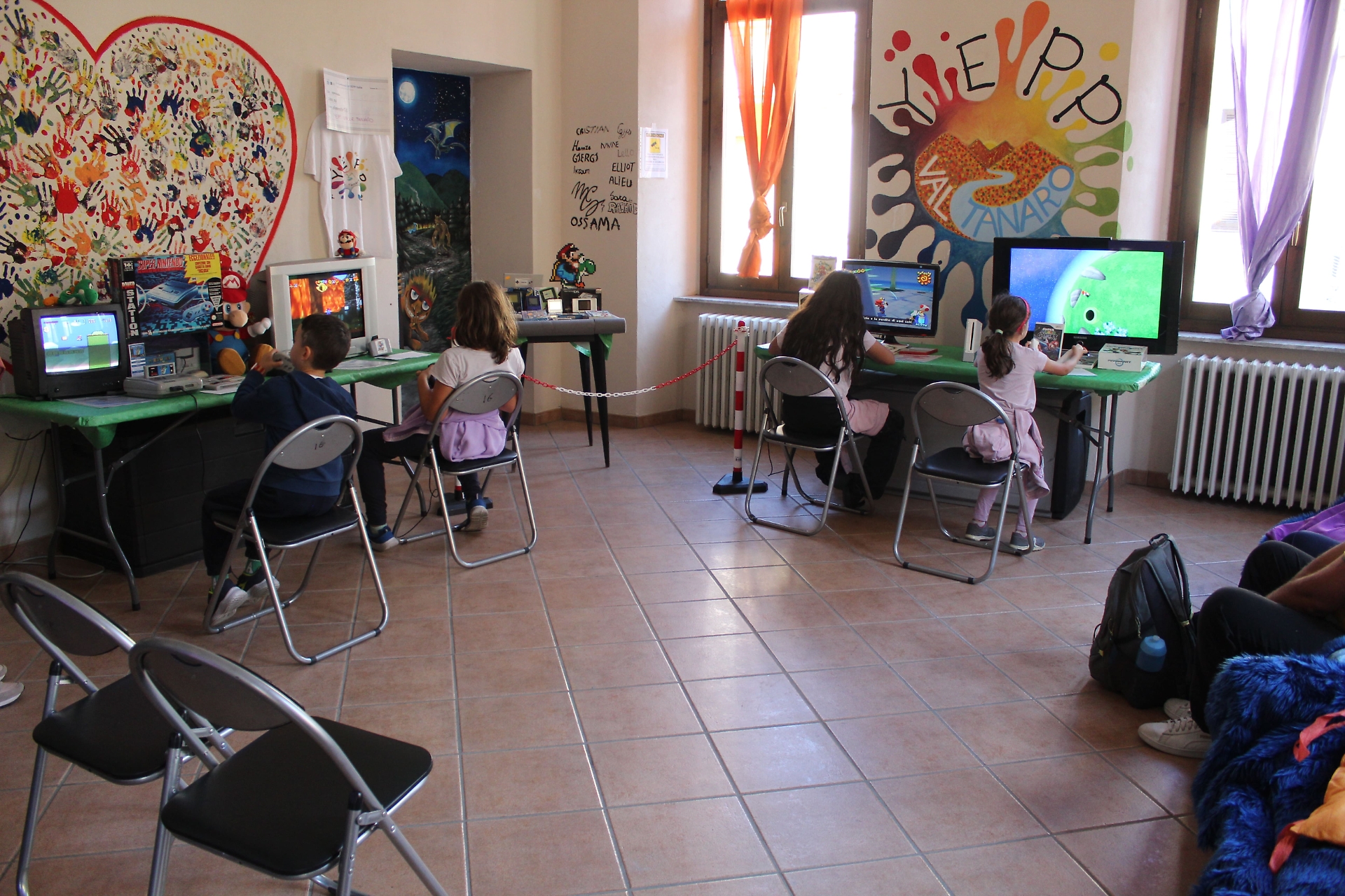 L’atmosfera, rilassata e piena di sorrisi, ha unito giovani e meno giovani: bambini che si cimentavano con giochi più vecchi di loro e adulti che, joystick alla mano, tornavano per un momento alla propria infanzia.
