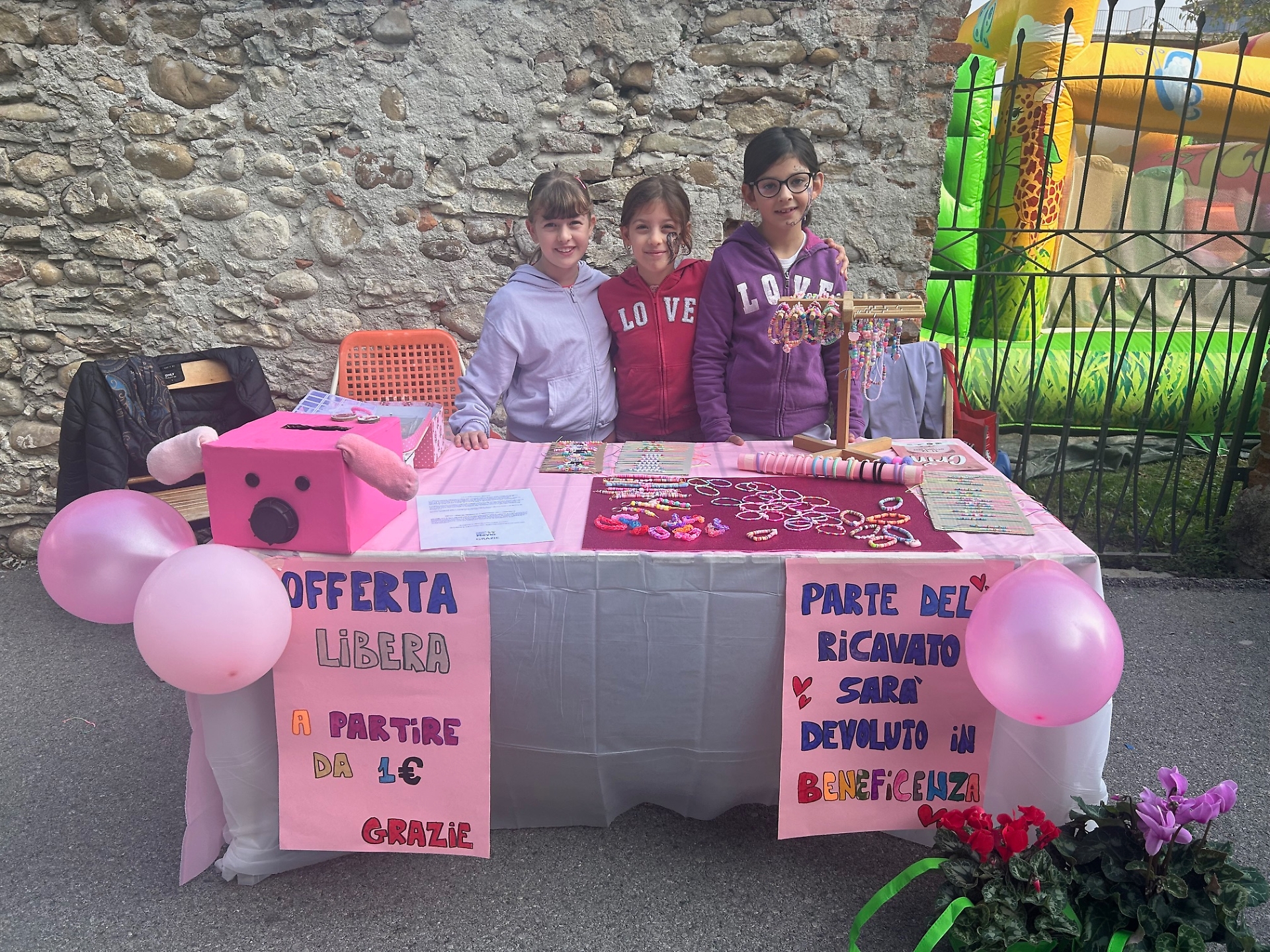 Dietro il banchetto, tre piccole artigiane dal cuore d’oro: Alice Gallo e le sorelline Susanna e Rebecca Gioannini, compagne di scuola alle Elementari, che hanno deciso di unire fantasia e solidarietà per una nobile causa.