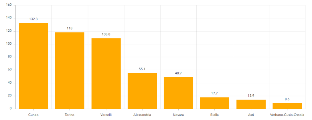 Tra le province piemontesi, Cuneo guida la classifica dei nuovi consumi con 132 ettari di suolo perso. Seguono Torino (118) e Vercelli (109), quest’ultima protagonista di un boom inedito legato all’installazione di impianti fotovoltaici a terra.