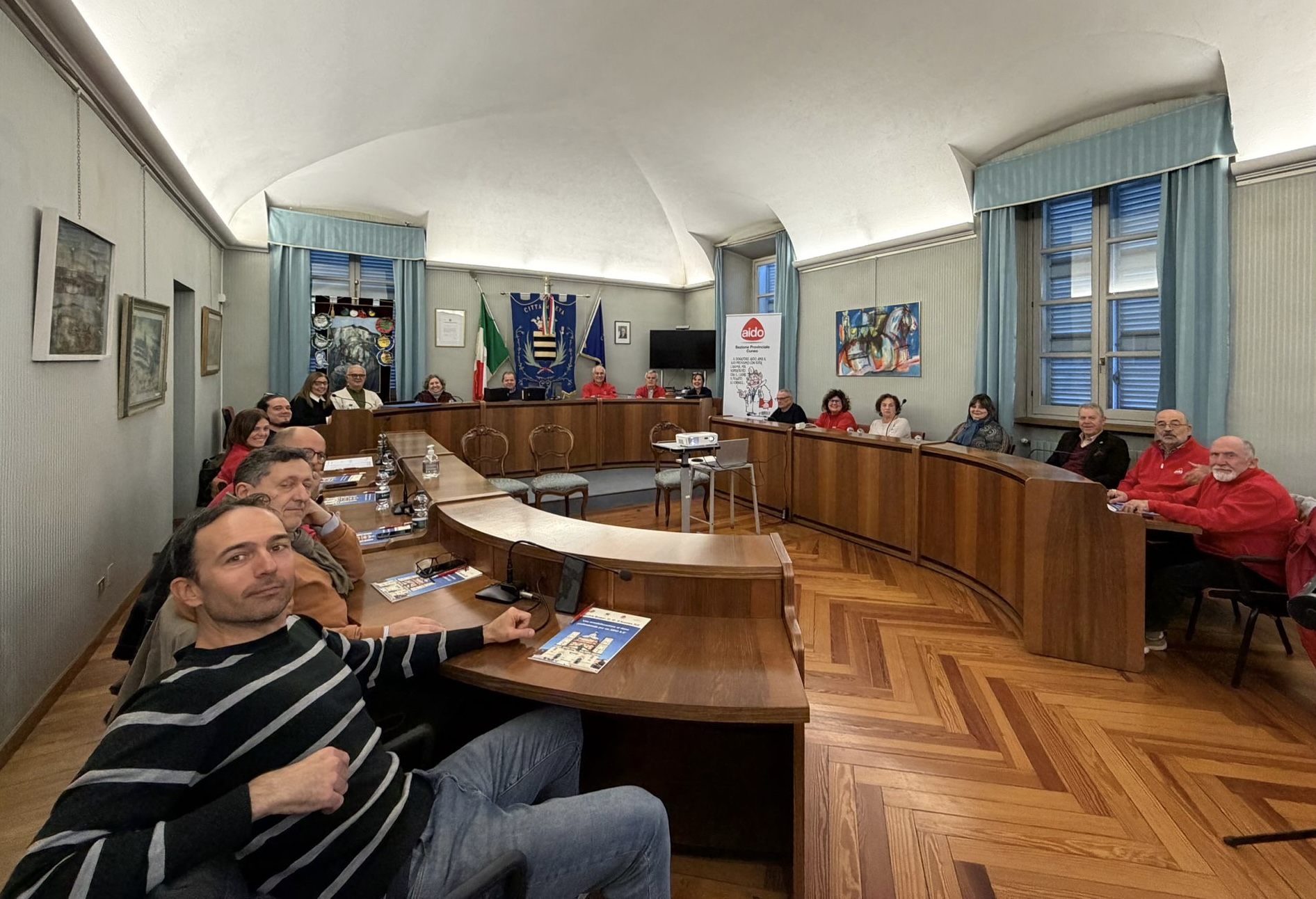 Grazie all'ospitalità del Gruppo Intercomunale AIDO di Ceva, del presidente Massimo Sasso, e la disponibilità dell'Amministrazione cebana, nella splendida cornice della sala consigliare si è svolto sabato 29 il Consiglio direttivo della Sezione provinciale di Cuneo, coordinato da Enrico Giraudo, numero uno della realtà di coordinamento associativo della "Granda".