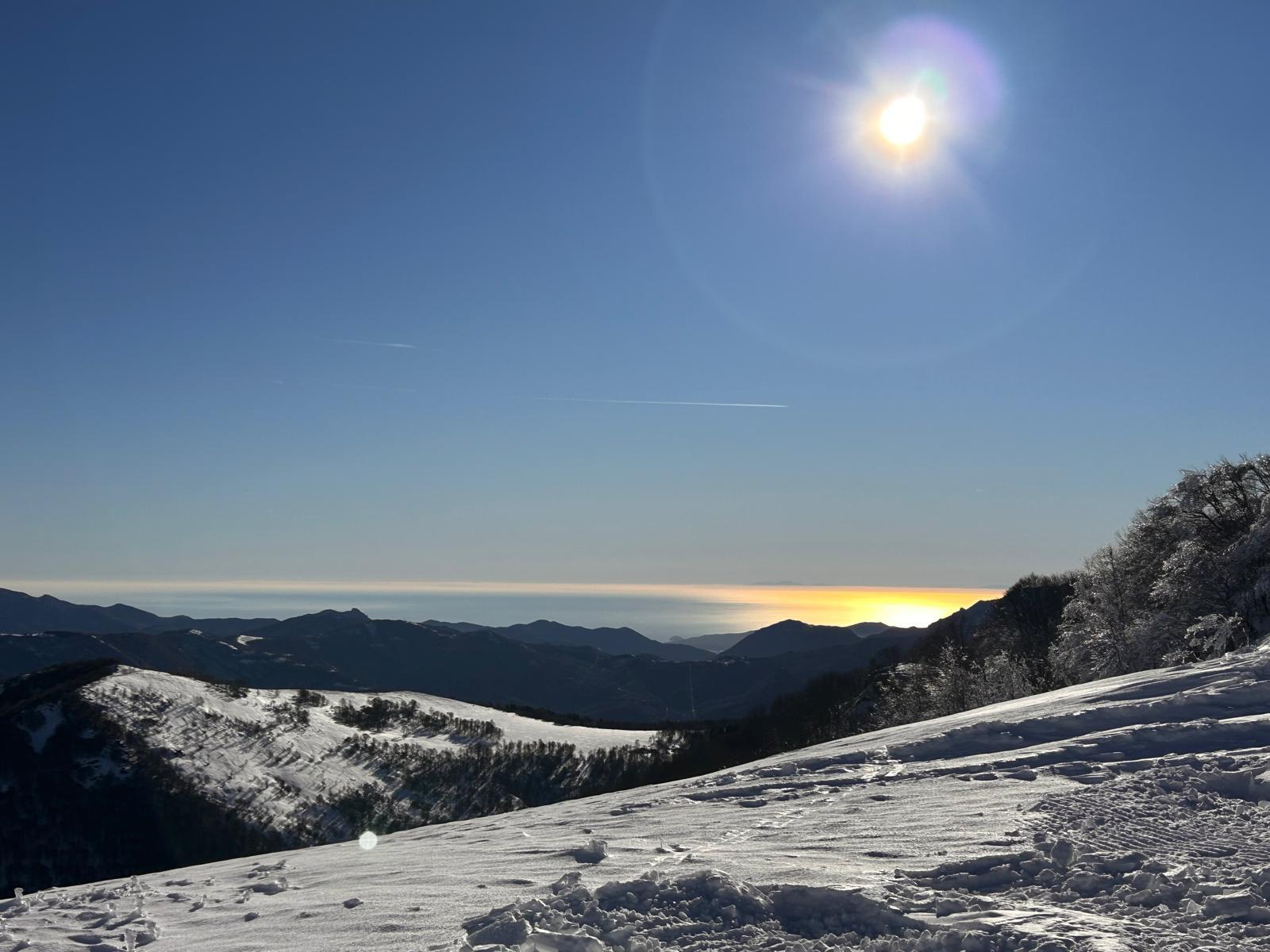 E poi c’è un dettaglio che rende questo periodo ancora più magico: nelle giornate più limpide, da Viola si vedeva il mare. E non solo: all’orizzonte, anche la Corsica (foto sotto). Un panorama da cartolina che ha lasciato tutti a bocca aperta.