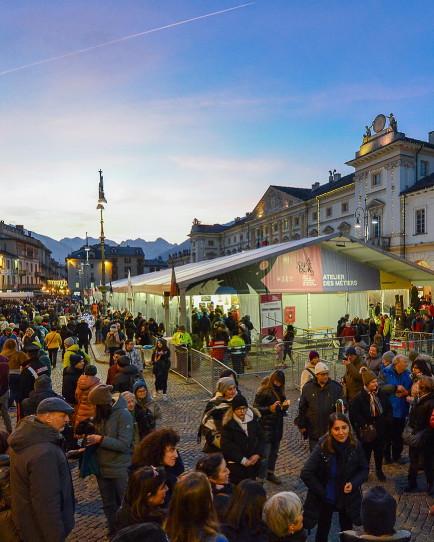 In piazza Chanoux trova sede l'atelier des Métiers: la casa delle imprese e dei maestri artigiani. Negli stands aperti al pubblico sono stipati oggetti d'ogni genere, dai mobili alle sculture, dai complementi d'arredo ai tessuti. Principalmente, i materiali che offre la montagna: legno e pietra, ma anche ferro e rame. In piazza Piouves invece trova spazio il settore enogastronomico, dai prodotti della filiera del latte e del formaggio a quelli dell'allevamento: affettati e carni. Poi, dolci, mieli confetture, ortaggi e enologia.