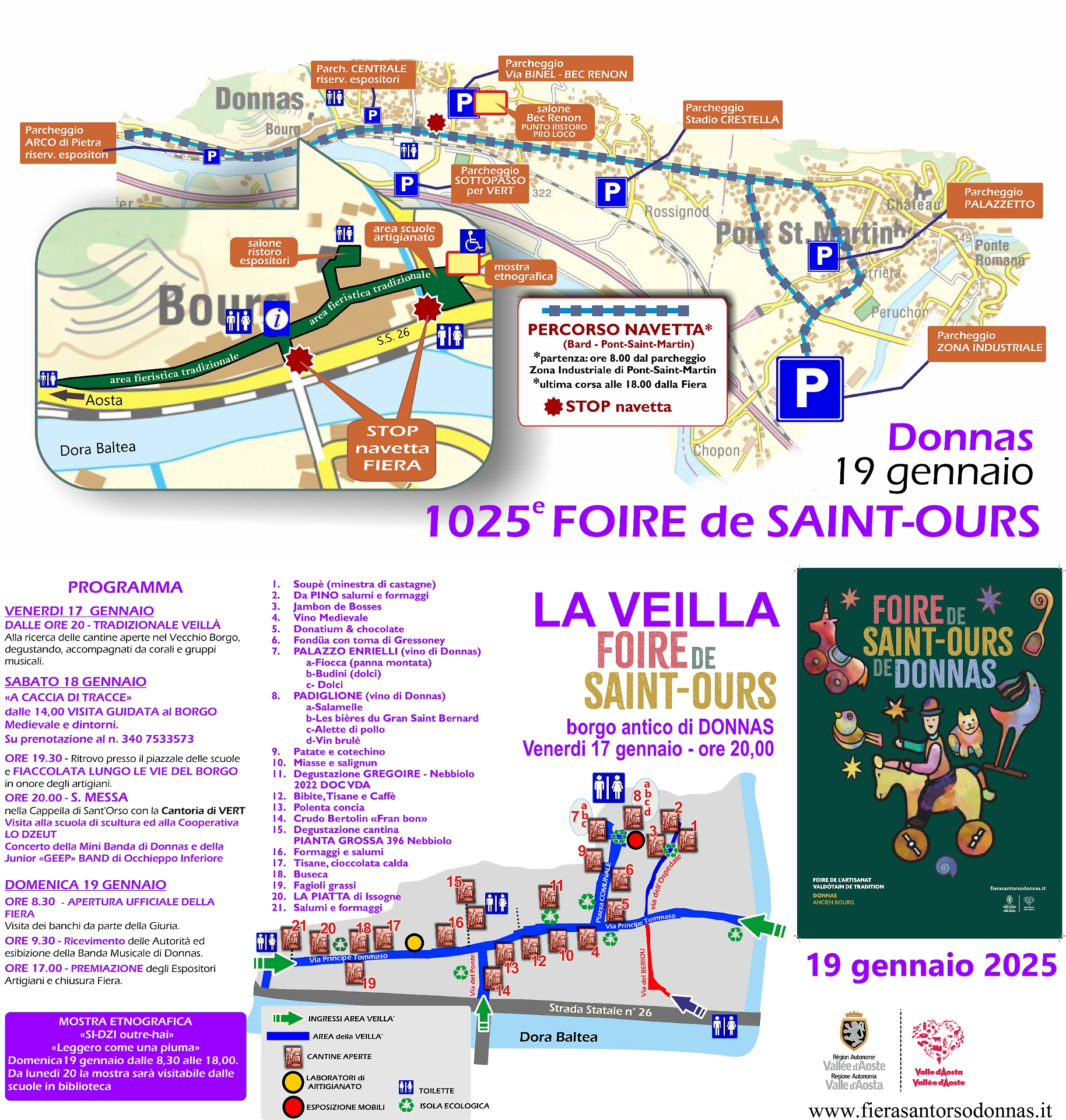 A Donnas si parte prima rispetto ad Aosta: la manifestazione parte il 16 gennaio per concludersi il 18. La ricetta è sempre quella: artigianato, enogastronomia, musica, degustazioni, tradizione, arte e autenticità, per giornate speciali alla scoperta della grande tradizione della Valle d'Aosta e della montagna.