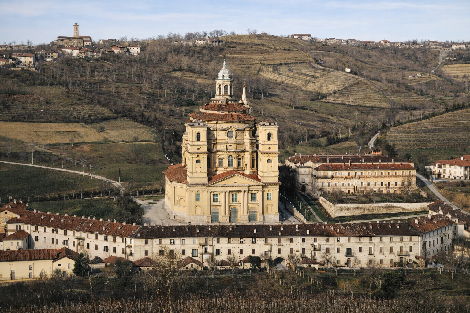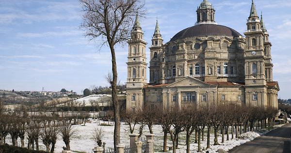 Nel 1881 il Santuario di Vicoforte ottenne la dignità di monumento nazionale, anche su autorevole parere dell'architetto Alessandro Antonelli. In concomitanza con la terza incoronazione della Madonna del Pilone l'anno successivo (con oltre centomila pellegrini e undici vescovi richiamati al cospetto della Vergine di Vico) si bandirono appalti per nuove opere: la copertura della grande cupola in lamiera di rame e il completamento uniforme dei due campanili. L'aspetto del Santuario, quindi, era quello della foto che vedete in basso. La nuova copertura, che sostituì quella del tetto in coppi, fu compiuta nel 1884. Fu in questa occasione che i campanili vengono realizzati sormontati dalle cuspidi (foto in alto) che suscitarono fin da subito polemiche e critiche per il loro aspetto. Divenute pericolanti, sarebbero poi state abbattute vent'anni dopo la loro costruzione