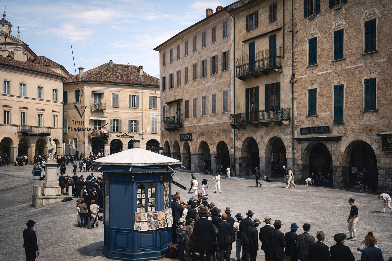 In queste immagini, l'aspetto di Piazza Maggiore a fine Ottocento, senza aiuole nè auto, senza la scalinata che oggi la divide a metà. È presente l'edicola davanti alla chiesa della Missione. Sulla parte alta della piazza, talvolta, si giocava a "Balon", come documentato da un'altra immagine dell'epoca.