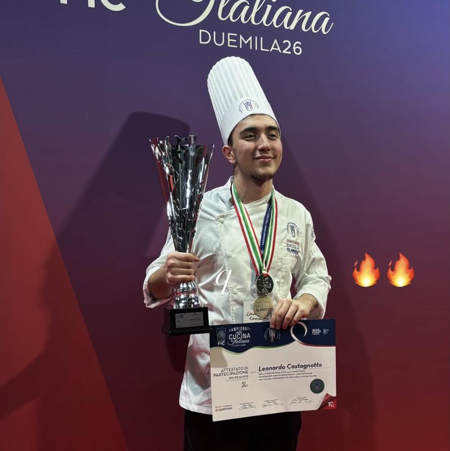 Leonardo si era guadagnato la partecipazione a Rimini come rappresentate per il Piemonte aggiudicandosi, nel marzo scorso, il concorso “Trofeo Migliore Allievo delle Scuole alberghiere Chef 2025” al salone Horeca di Torino insieme all’Associazione Cuochi della Provincia Granda (ACPG).