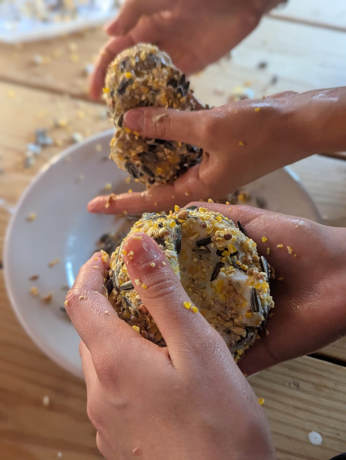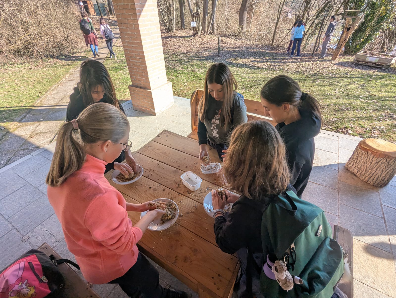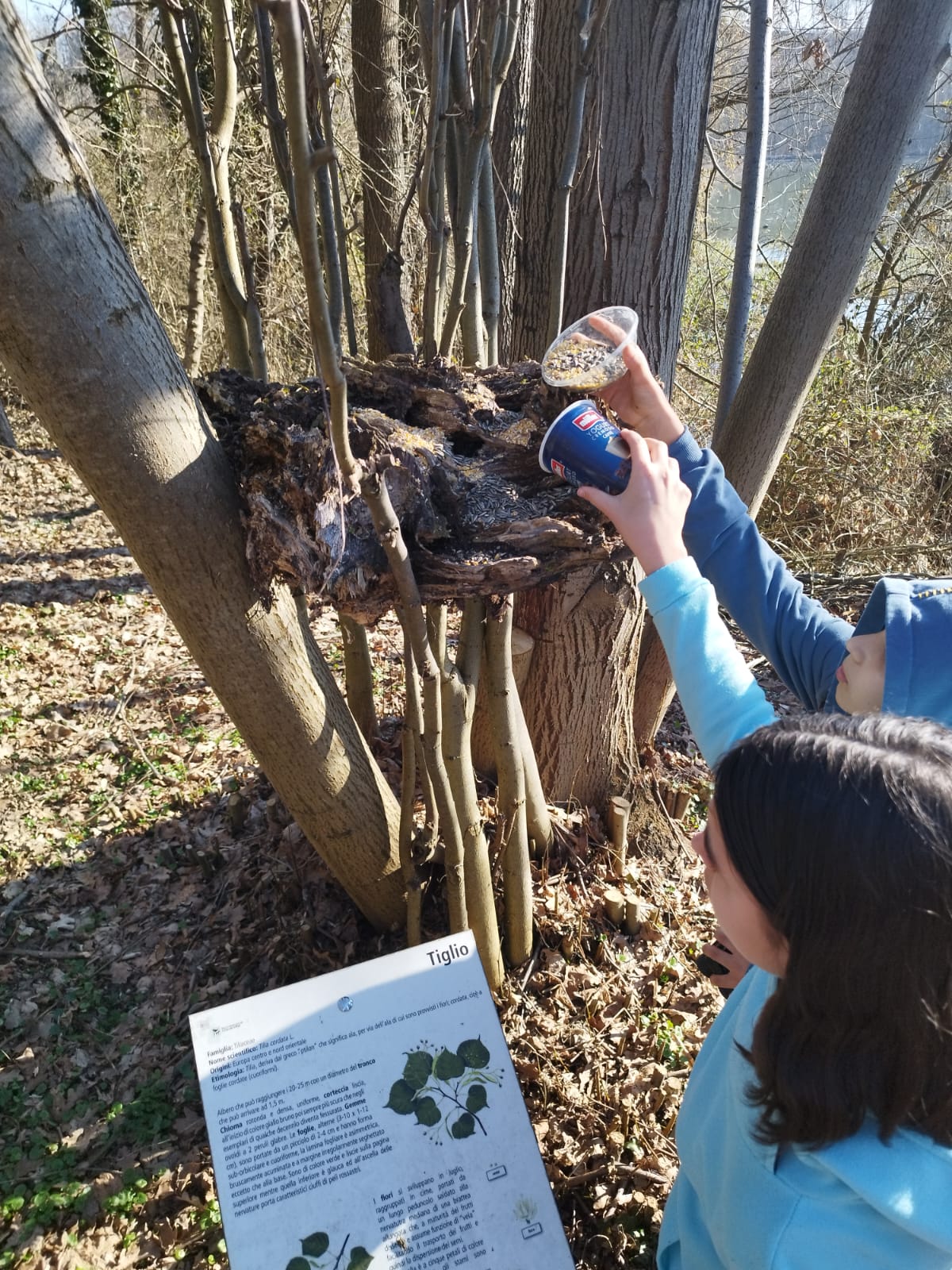 Successivamente l’attenzione si è spostata sulla fauna locale. I partecipanti hanno realizzato palline di grasso arricchite con semi da collocare nelle mangiatoie della Riserva. L’inverno, infatti, non è ancora concluso e per molti uccelli rappresenta una fase critica: le risorse naturali diminuiscono e il dispendio energetico aumenta. Un supporto alimentare mirato può contribuire in modo significativo alla loro sopravvivenza.