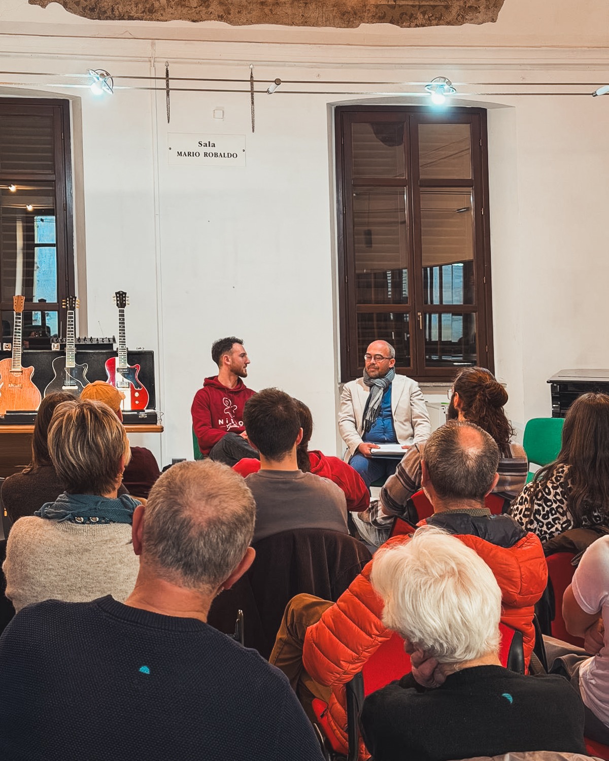 Un aspetto che ha colpito il pubblico è la dimensione raggiunta dal suo lavoro: le chitarre costruite in laboratorio sono suonate in Italia e all’estero, arrivate su palchi importanti insieme a musicisti e artisti che spesso ascoltiamo anche in radio. Un messaggio chiaro, soprattutto per i più giovani: i mestieri artigianali non appartengono al passato, ma possono essere un futuro concreto e contemporaneo.