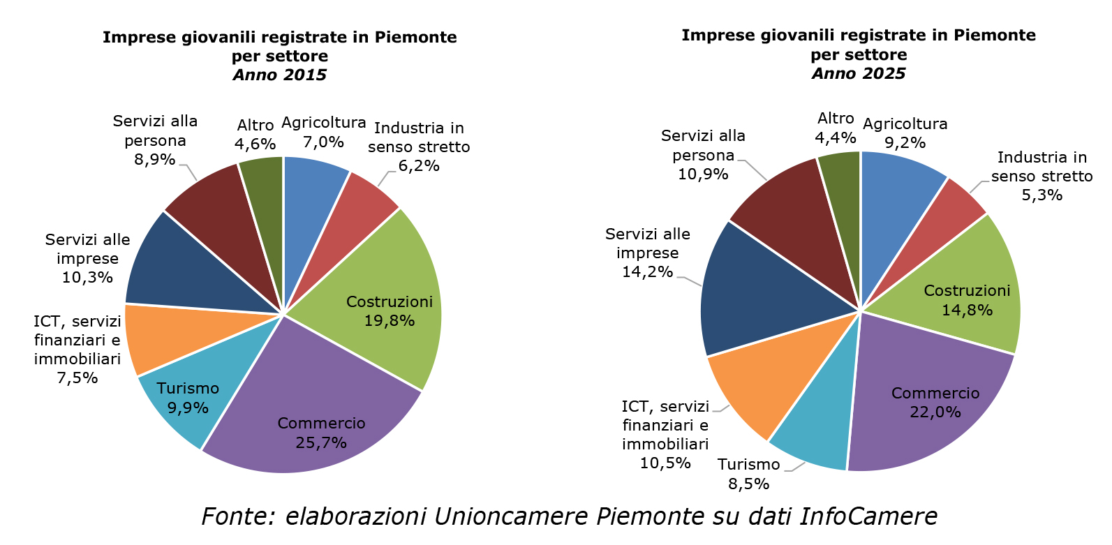 “Il panorama dell’imprenditoria giovanile piemontese attraversa una metamorfosi strutturale che riflette la trasformazione dell’economia regionale. Più che una semplice flessione, osserviamo un riposizionamento strategico delle nuove generazioni che abbandonano i comparti tradizionali, come edilizia e commercio, per scommettere con decisione su innovazione tecnologica, ICT e servizi specialistici – commenta Gian Paolo Coscia, presidente Unioncamere Piemonte -. Questa evoluzione verso modelli organizzativi più complessi rappresenta la risposta dei giovani imprenditori a un contesto segnato dall’inverno demografico e da barriere all’entrata sempre più selettive. La sfida per le istituzioni consiste oggi nel sostenere il ricambio generazionale, trasformando la contrazione della base imprenditoriale in un’opportunità di modernizzazione. Nonostante le difficoltà diffuse sul territorio, il Piemonte mantiene una vocazione imprenditoriale vivace, pronta a guidare lo sviluppo futuro attraverso competenze avanzate e digitale”.