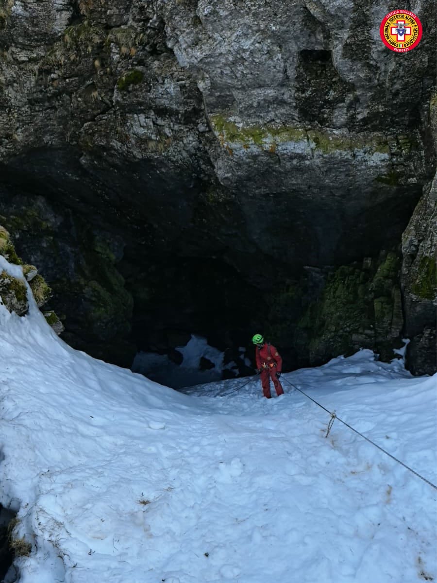 L’attività si è svolta presso la Voragine della Ciuaiera, nel comune di Ormea, una cavità che si apre a quota 2.099 metri sul livello del mare e che, per gran parte dell’anno, presenta all’ingresso grandi cumuli di neve. Le condizioni ambientali hanno reso l’esercitazione particolarmente realistica, simulando uno scenario operativo privo di supporto elicotteristico e caratterizzato da un lungo avvicinamento su terreno innevato.