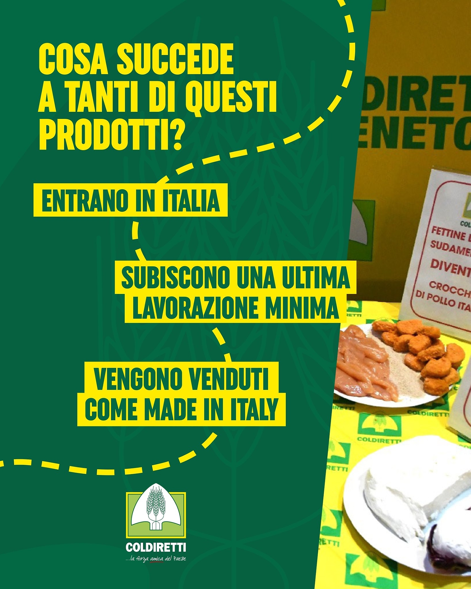 «Non ci stancheremo mai di dirlo: fermiamo il falso cibo italiano», è il messaggio lanciato dall’organizzazione agricola.