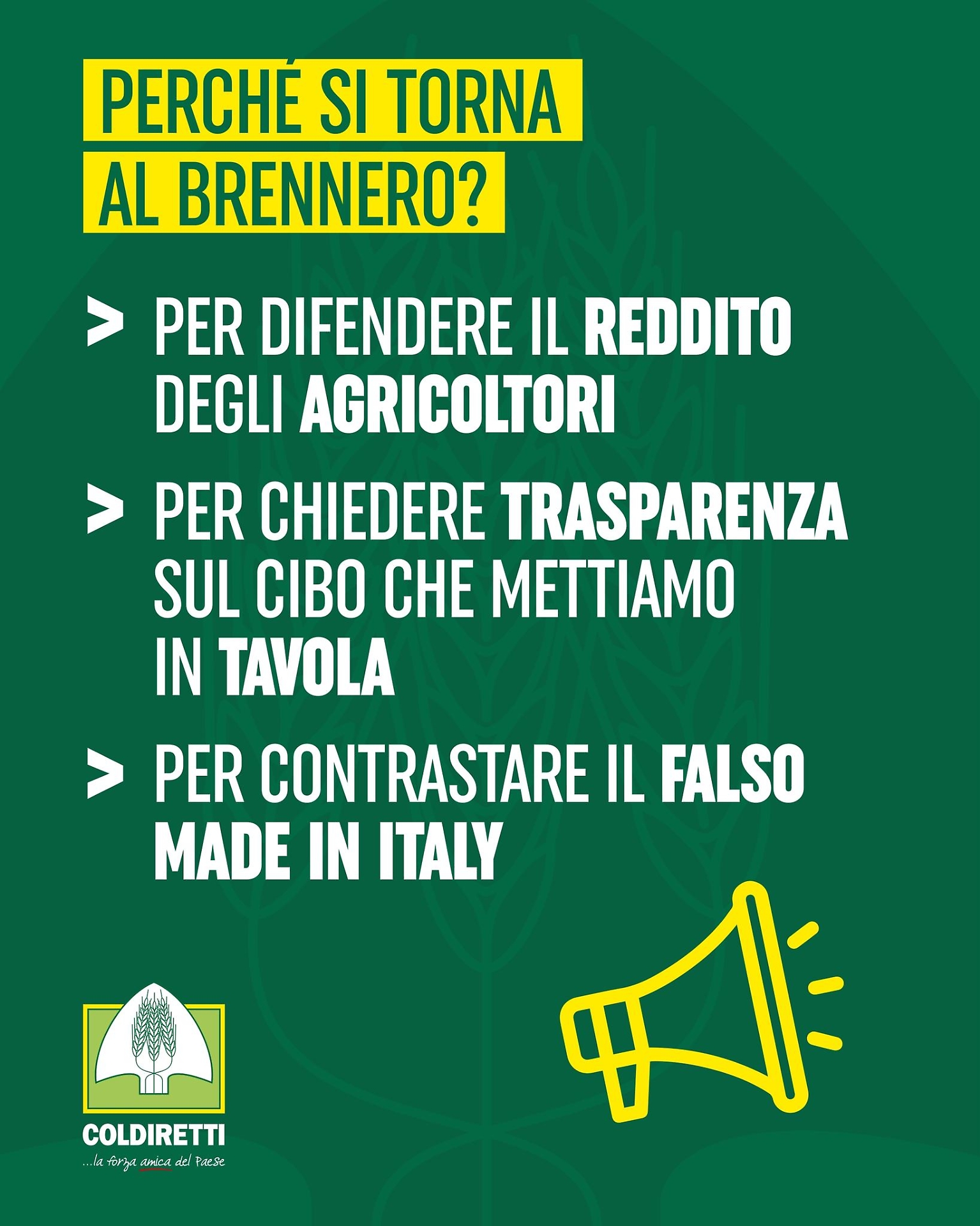 Una battaglia definita senza mezzi termini “la madre di tutte le battaglie”. E che ora torna al Brennero con un messaggio netto: fermare il falso cibo italiano.