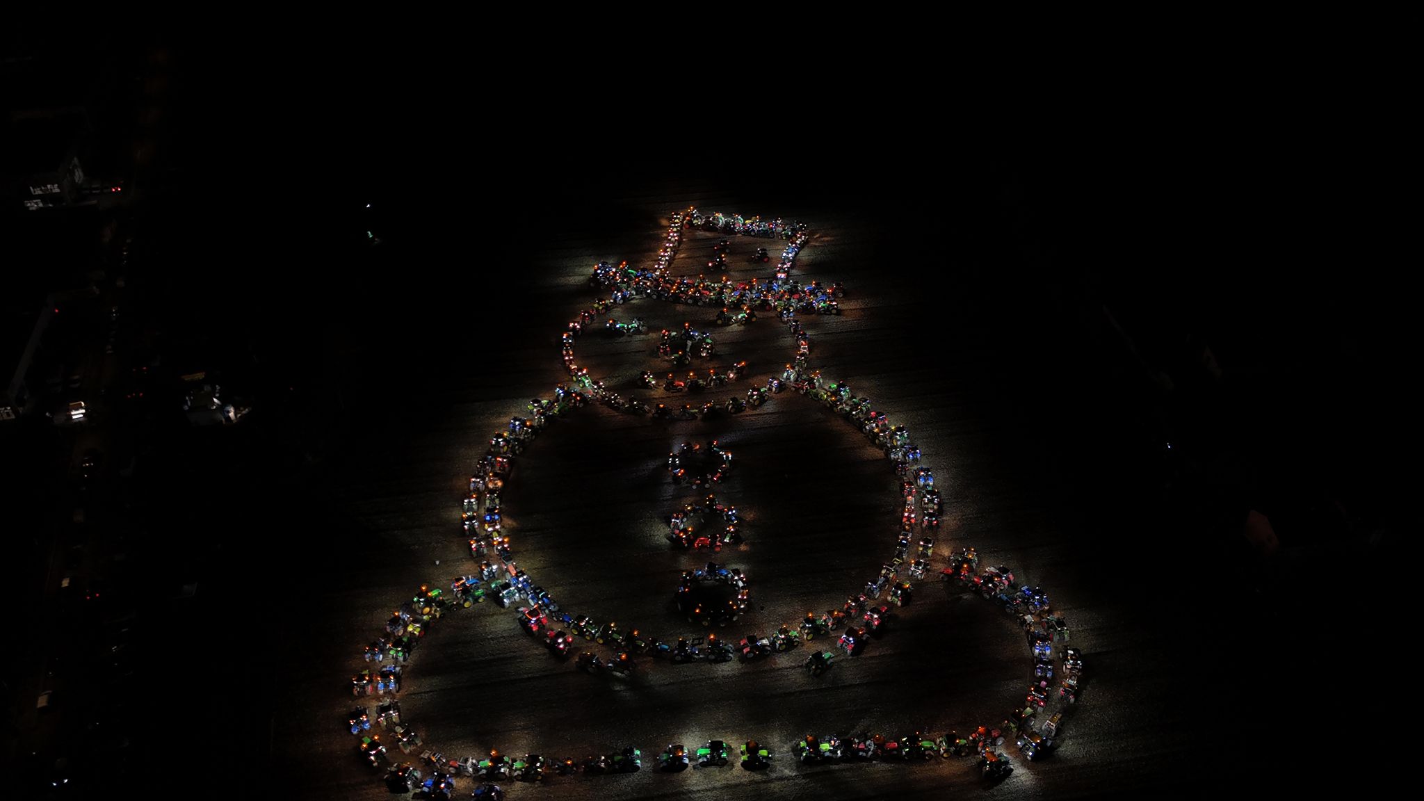 La ricetta è semplice e complessa al tempo stesso: nei giorni precedenti ci si ritrova sul terreno scelto per tracciare la figura a mezzo di pali e nastri. Una volta definita, si può iniziare a progettare la disposizione dei trattori. Poi, il giorno stesso, mano a mano che arrivano i partecipanti (sono circa 250) vengono accompagnati ai loro posteggi, in un delicatissimo incastro. Al calar del sole, inizia la coreografia di fanali, lampeggianti, luci e con il drone si può scattare la suggestiva immagine dall’alto. Intanto, inizia la festa, tra vin brulè, brindisi beneauguranti e solidarietà. Già perché ogni anno, insieme a questo simpatico ritrovo spontaneo, si accosta una raccolta fondi solidale, i cui fondi vengono devoluti all’ospedale torinese Regina Margherita, tramite l'Associazione Macrodattilia e Pros e il reparto Cardiochirurgia pediatrica dell'Ospedale. Ecco quindi che gli auguri di natale degli agricoltori beinettesi hanno un sapore ancora più speciale. L’iniziativa è curata da un gruppo di amici: Davide, Dario, Gianfranco, Giovanni, Paolo, Alex, Matteo, Flavio, Samuele, Adriano. Il brindisi finale è offerto da Agricolproject, ovvero Stefania Forneris e Flavio Lucchino mentre nel pomeriggio si gustano le caldarroste di Pier e il vin brulè di Adry. Il drone per lo scatto è stato guidato da Giorgia Tassone.