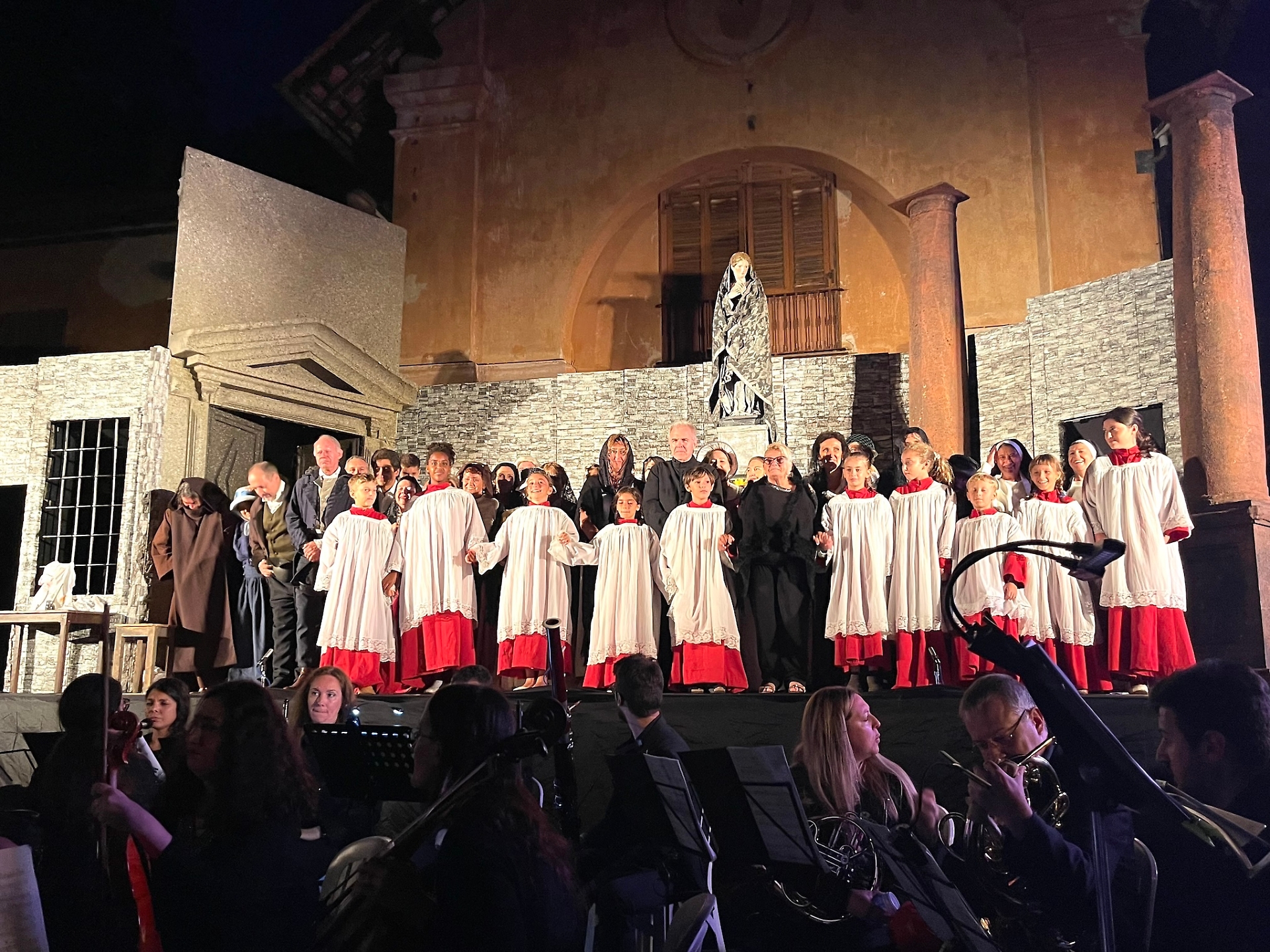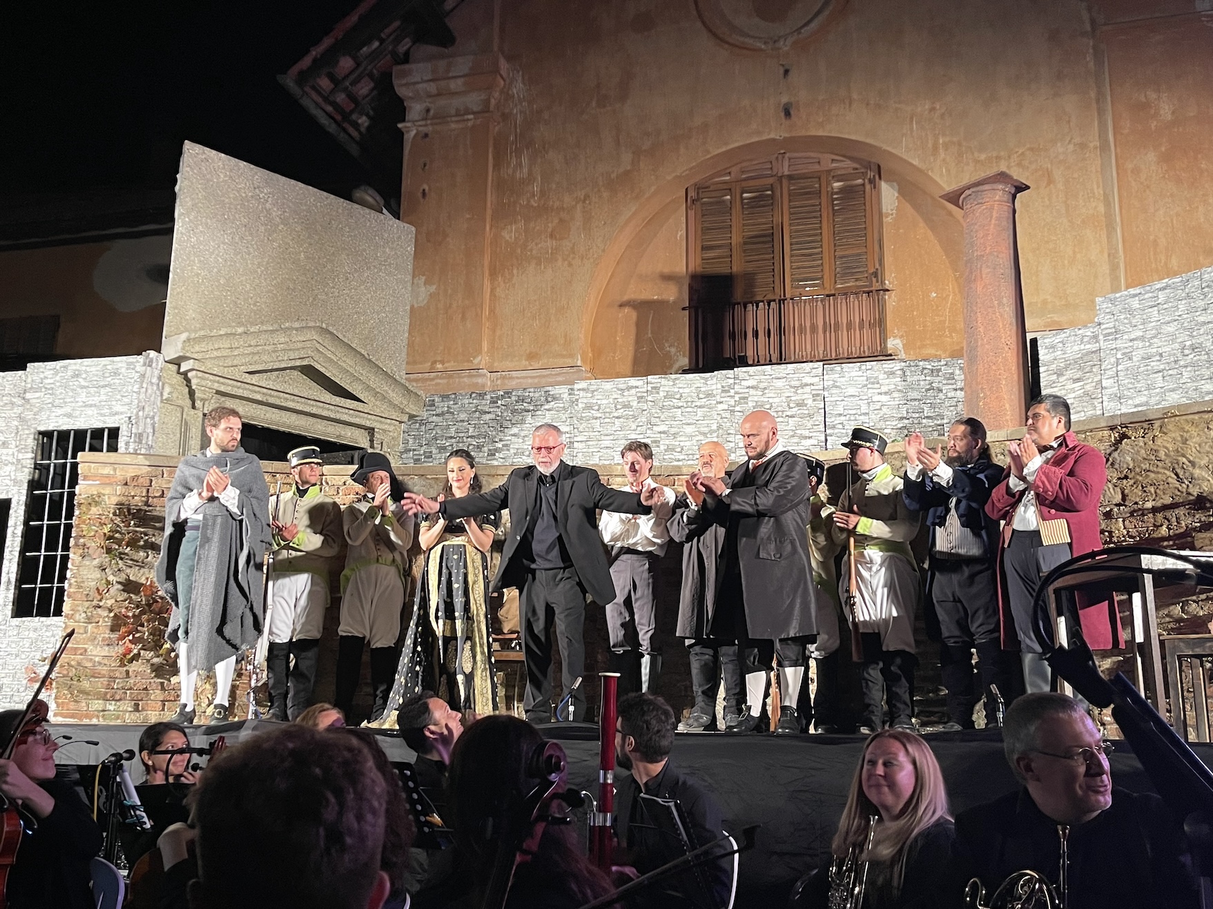 Alla bacchetta, il maestro M. Franco Giacosa ha diretto l'Opera Symphony Orchestra con gesto essenziale, ma carico di significato, senza cedere mai al manierismo o alla retorica sonora. La sua concertazione si rivela un modello di trasparenza e precisione: la tensione tra lirismo e dramma sempre controllata. Le sezioni degli archi, morbide e compatte, si stemperano in un continuo respiro narrativo, mentre gli ottoni (in particolare nei momenti liturgici) conservano un colore dorato e rotondo, mai invasivo ma profondamente evocativo. Il “Coro Lirico Quadrivium”, guidato con sicurezza e raffinatezza da M. Gianni Bergamo, raggiunge punte di assoluta grandezza nel celebre “Te Deum” che chiude il primo atto: un affresco sonoro sontuoso, costruito su un sapiente equilibrio fra sacralità teatrale e intensità drammatica.