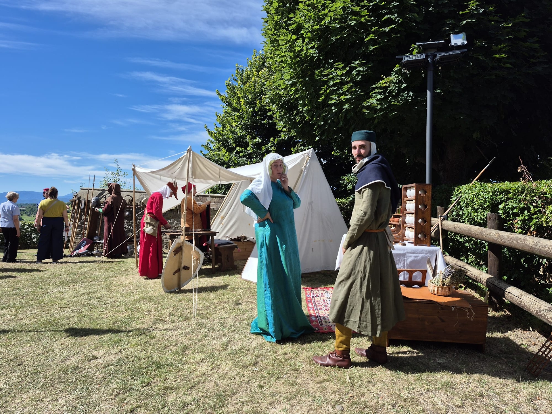 I tre accampamenti storici – quelli dell’Accademia di Scherma di Alba, della Compagnia dell’Orso Nero e del gruppo Contemezzocuore – hanno portato in vita epoche diverse del Medioevo, con dimostrazioni di combattimento, vita da campo e racconti di un tempo lontano. Al Giardino Tovegni, tra falchi e rapaci, i falconieri hanno dato prova dell'antica arte della caccia con il falcone, mentre nell’area del campo da tennis i più coraggiosi si sono cimentati con arco e frecce sotto la guida di esperti.