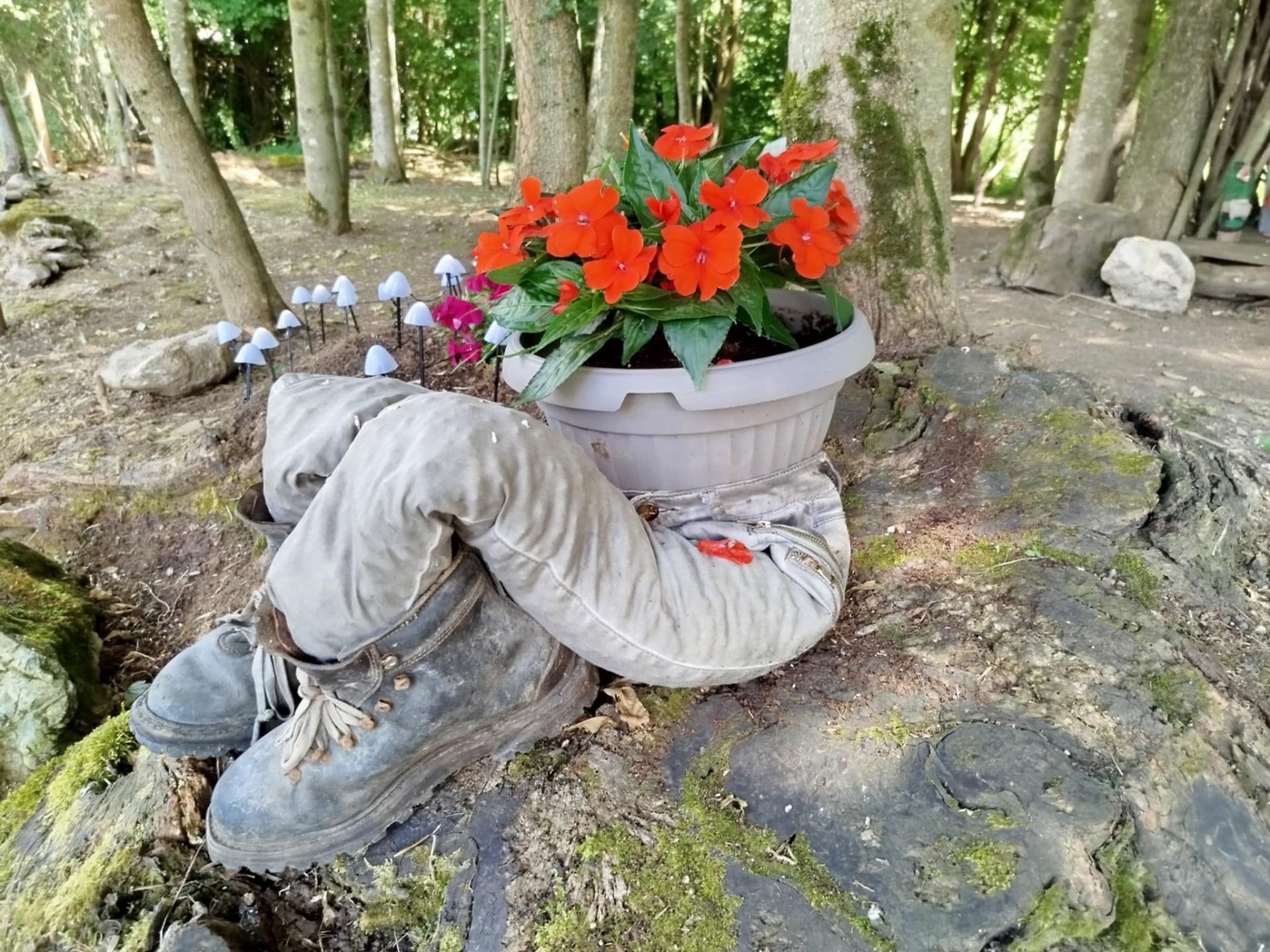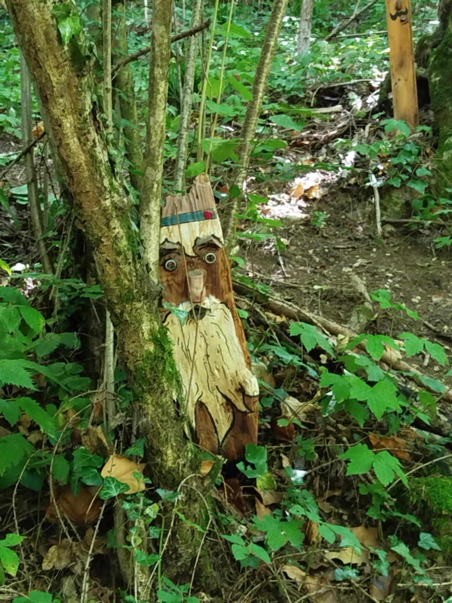 Addentrandoci nel fitto della vegetazione, ci siamo trovati circondati da un’atmosfera unica: silenzi rotti solo dal canto degli uccelli e dal mormorio del torrente vicino, mentre tra alberi secolari e muschi profumati fanno capolino le figure fantastiche che animano il mondo del Sarvanòt, lo “spirito della casa” e non solo, della tradizione occitana, custode di misteri e leggende tramandate da generazioni.
