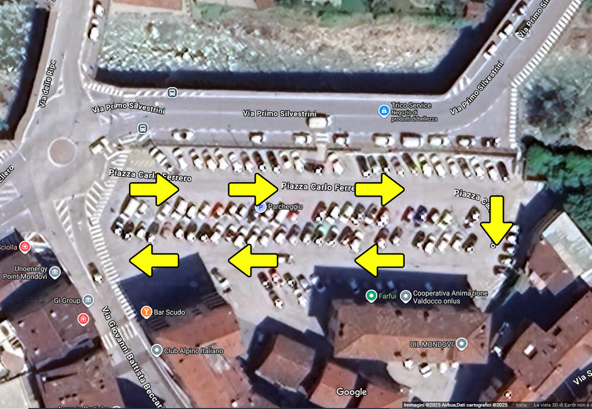entrata pienamente in vigore la modifica alla viabilità in piazza Ferrero a Mondovì Breo, una pizza utilizzatissima come parcheggio (90 stalli gratuiti) soprattutto nei giorni in cui la vicina piazza Ellero è occupata dai banchi del mercato o da manifestazioni.