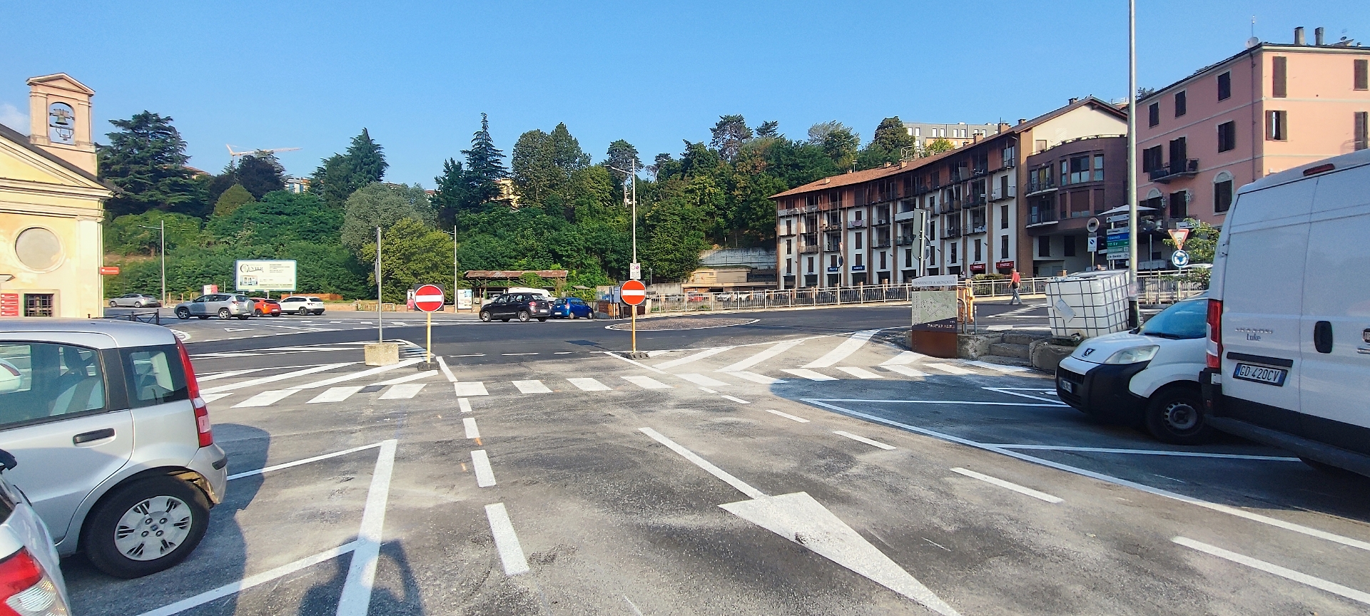 Fino a ieri, l'ingresso per le auto era di fronte al bar: quindi per entrare nella piazza si doveva imboccare un tratto di via Beccaria e poi svoltare a sinistra, mentre per uscire ci si immetteva immediatamente nel rotondino sotto via Ripe. La circolazione era in senso anti-orario.