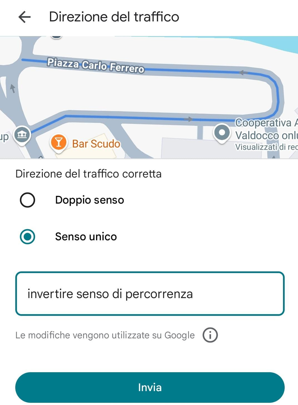 C'è però un piccolo dettaglio: la modifica della viabilità non risulta su Google Maps, la notissima app di Google (usatissima come navigatore), stamane, riportava ancora il "vecchio" senso di percorrenza. È una sciocchezza, certamente... ma dal momento che in quella piazza ci sono uffici e che è un parcheggio usato molto da chi viene da fuori, ci pare utile che questa modifica compaia in uno dei principali strumenti utilizzati dagli automobilisti.
