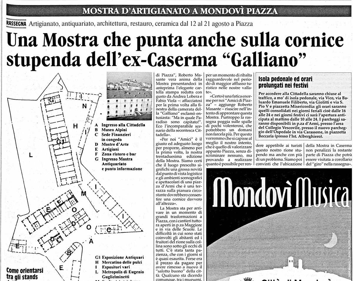 «La novità della Cittadella, della piazza rinnovata, del nuovo impianto espositivo ha attirato a Mondovì un grande numero di pubblico (l'edizione 2000, anche a detta degli espositori, che hanno già confermato la loro presenza per la 33a edizione, si pone come una delle più seguite), certamente curioso di scoprire il fascino di una Caserma messa a nuovo, trasformata nei contenuti, ma intatta nell'asprezza della sua posizione e delle sue strutture. L'ambientazione, la scenografia e la riorganizzazione degli spazi della Cittadella sono state giudicate in modo positivo, senza dimenticare che la nota di colore del materiale esposto si è sposata a meraviglia con l'ambiente dell'ex Caserma»