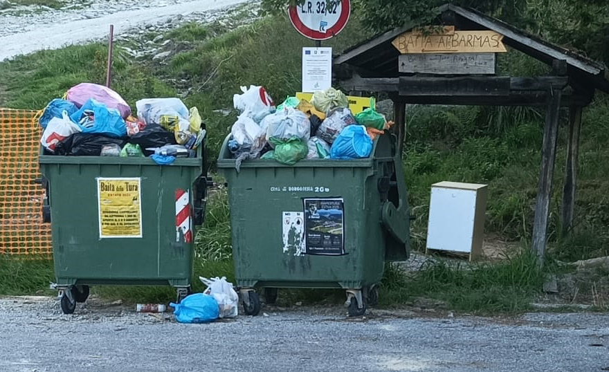 «Sono stati posizionati i nuovi bidoni della raccolta differenziata, ma in una posizione che prevede la "condivisione" con un altro condominio - scrive la persona -. Nel frattempo sono stati lasciati i vecchi bidoni verdi di fronte al nostro civico, a libero uso di tutti i passanti diretti verso i rifugi, oltre che dei rifugi stessi. Le criticità riguardo quanto sta accadendo sono molteplici: i bidoni verdi sono stracolmi di spazzatura presumibilmente riconducibile ai passanti che si recano o ritornano dalle baite, con annesso uso della "casetta" di legno per scaricare mobilio senza avvisare la ditta preposta di effettuare il ritiro dei rifiuti ingombranti. Per quanto riguarda i bidoni nuovi: siamo 143 unità abitative per palazzo, 286 unità in 2 condomini e, nei momenti di alta affluenza, si riempiono in brevissimo tempo. Una cosa per nulla igienica. Abitiamo in una via dove il turismo giornaliero è predominante rispetto a quello residenziale e quotidianamente verrebbero sfruttati i 4 bidoni forniti, in quanto a libero accesso per tutta la popolazione. Il problema di questi bidoni è anche che andrebbero rivalutati e resi condominiali».