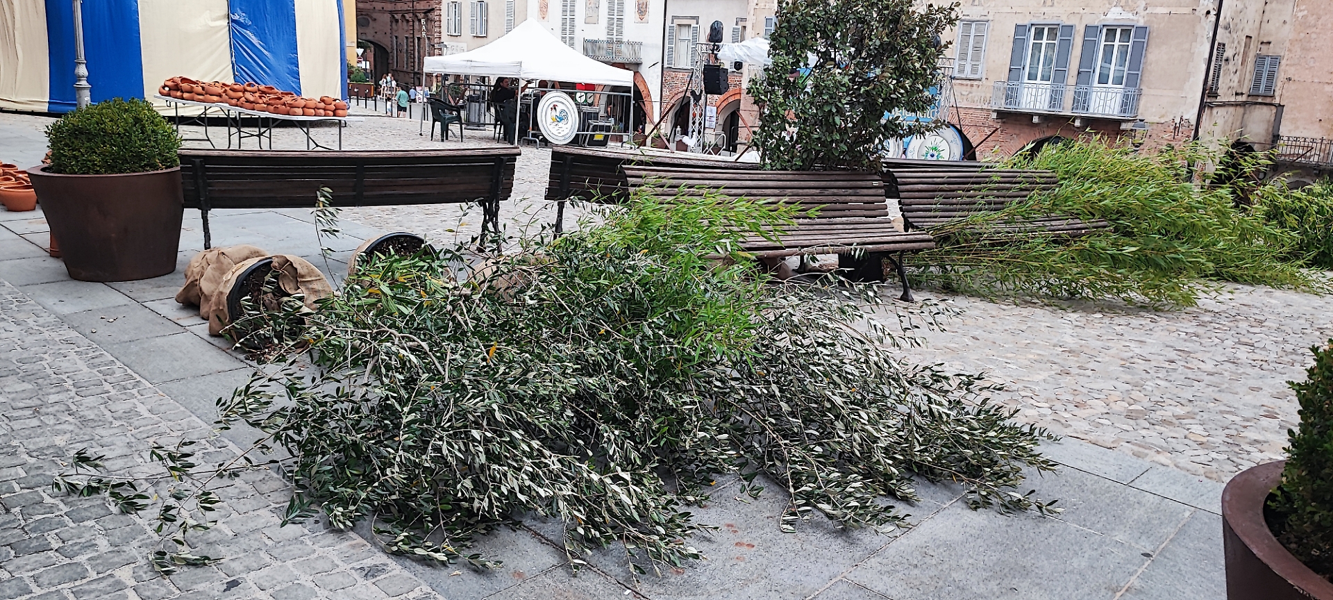 La tempesta di vento si è abbattuta anche su Mondovì, dove a Piazza si era nel pieno del primo giorno vero e proprio della Mostra dell'Artigianato. Il vento, fortissimo, ha costretto gli standisti a coprire i gazebo e per alcuni di loro è stato necessario ritirare la merce.