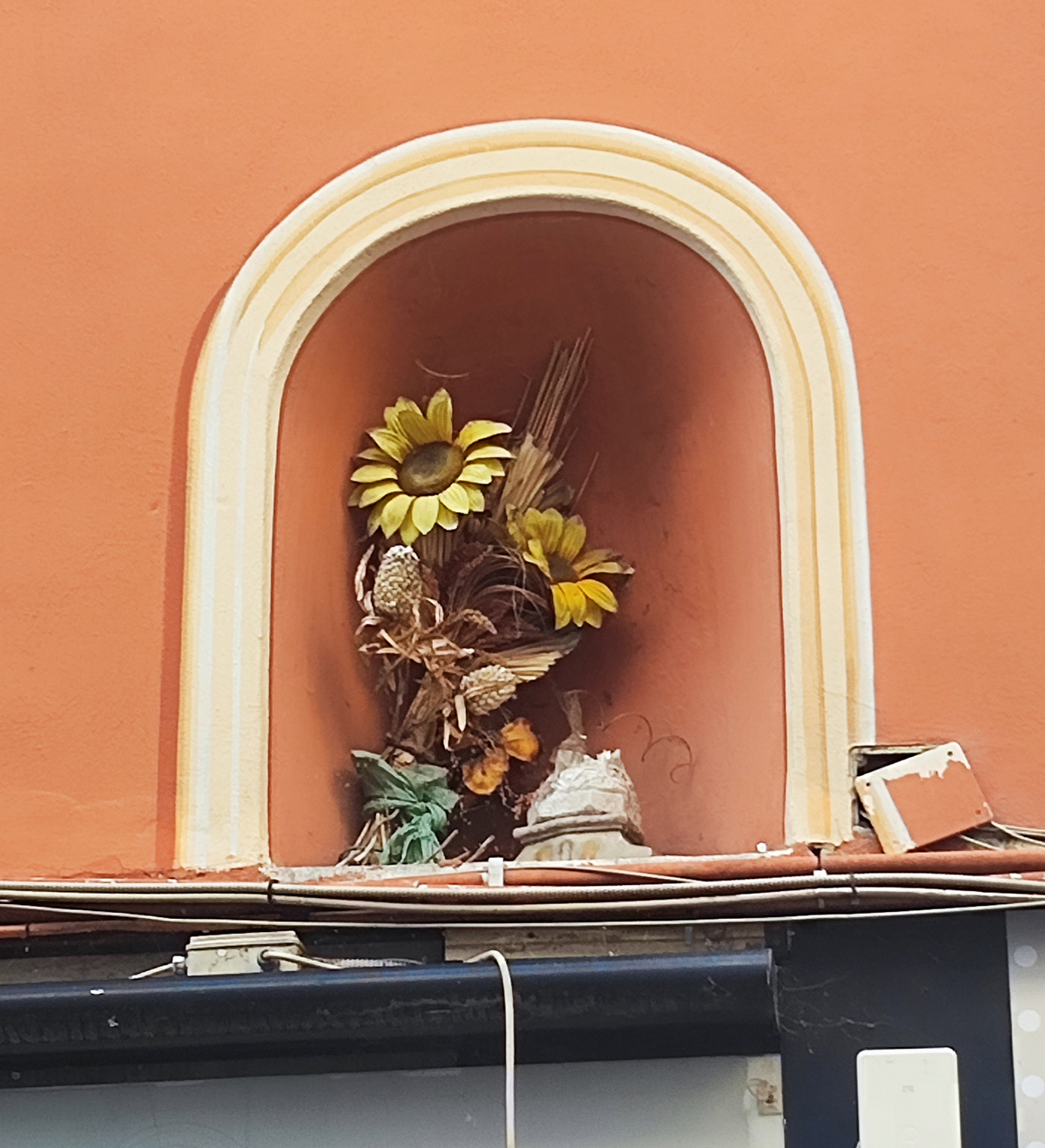 La statuetta si trovava all'interno di una piccola nicchia al di sopra delle vetrine della strada.
