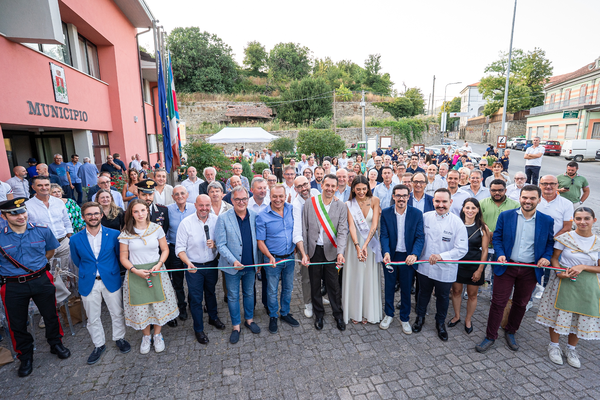 Nel momento inaugurale prima del taglio del nastro, con la conduzione di Fabio Gallina si sono susseguiti gli interventi dei tanti ospiti arrivati, ad iniziare dal capitano della Compagnia dei Carabinieri di Alba Giuseppe Santoro, che ha presentato il nuovo comandante della Stazione Carabinieri di Cortemilia, il giovane maresciallo Gabriele Valeriano; sono poi seguite le parole degli assessori della Regione Piemonte Paolo Bongioanni e Marco Gallo, seguiti dall’assessore valdostano Marco Carrel che ha ricordato la collaborazione in essere che celebra il connubio fontina-nocciola; per la Provincia di Cuneo il presidente Luca Robaldo, presente insieme a Massimo Antoniotti, Simone Manzone e Alberto Gatto, e poi Liliana Fregonese, assessore del Comune di Morgano nel Veneto, insieme al presidente Carlo Benotti e al direttore Paolo Donadini del Consorzio che tutela l’Asparago di Badoere IGP che si è potuto gustare in fiera, ed infine il sindaco di Santena Roberto Ghio.