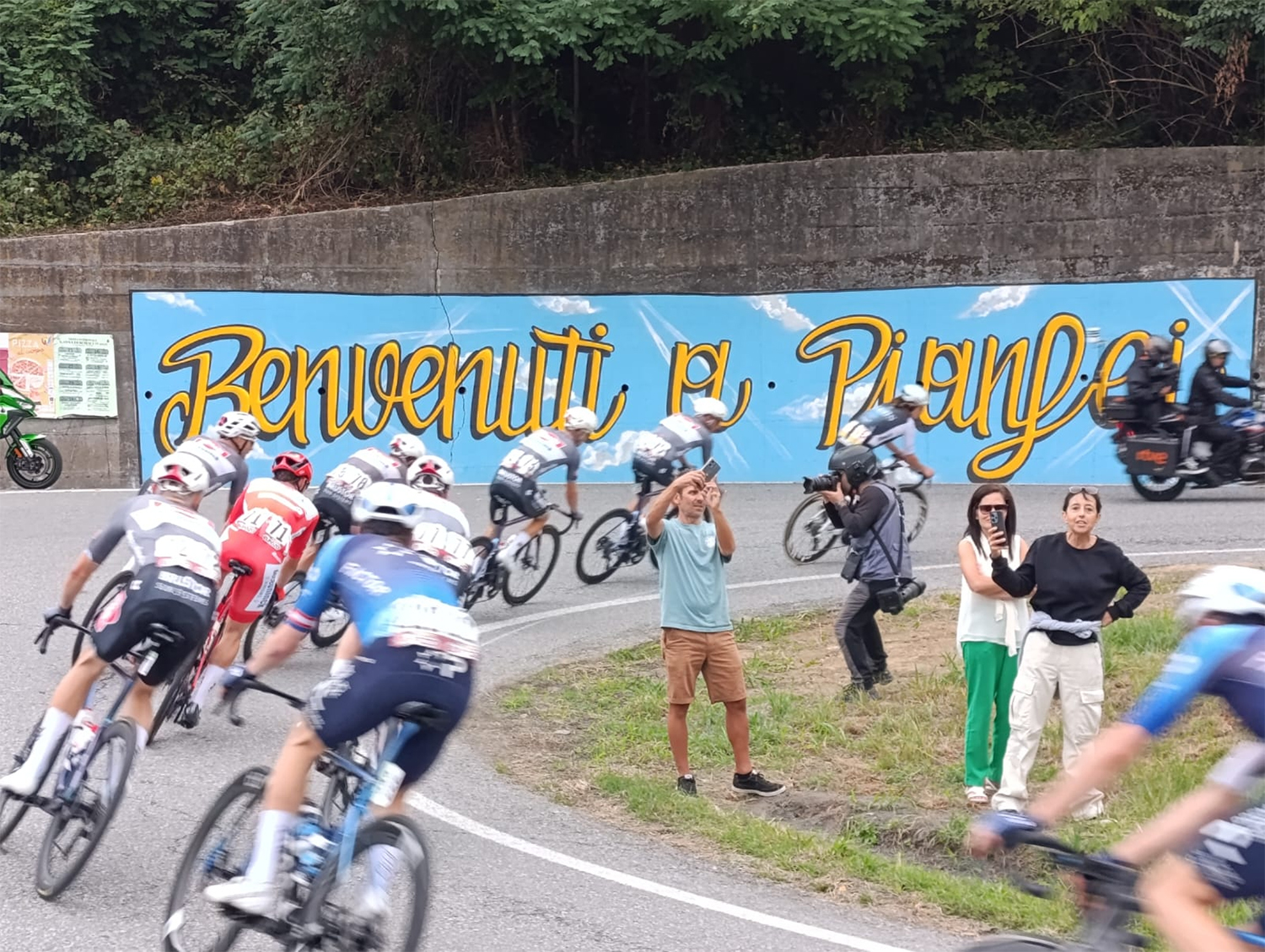 Il passaggio a Pianfei, davanti al nuovo murale: