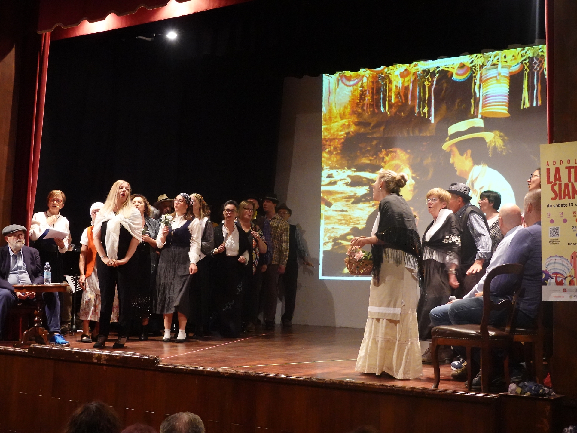 La Corale si è quindi esibita in alcuni pezzi della “Lena dël Ròcia-Mlon”, anche con la partecipazione di Roberta Garelli, oggi contralto al Regio di Torino, che dopo anni ha ripreso il ruolo già interpretato durante i suoi albori nella Corale Villanovese. L'esibizione è stata intervallata dagli aneddoti delle prime rappresentazioni del '900 e il ricordo degli ultimi spettacoli, messi in scena in collaborazione con la Corale Villanovese, con l'intervento di alcuni degli attori dell'epoca.