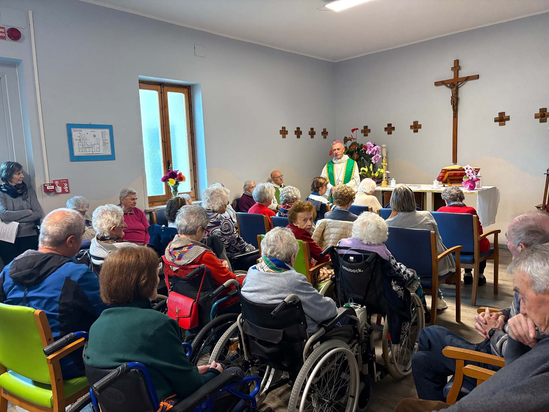 Al termine della celebrazione, mons. Egidio ha voluto portare la sua parola di conforto anche ai residenti allettati, visitando i nuclei della struttura e donando a ciascuno un’immagine della Madonna di Vicoforte, segno tangibile di vicinanza e di benedizione. Hanno partecipato alla funzione i Parroci don Luca Giaccaria e don Valerio Ferro, il Vice-sindaco Vilma Ghigo, parenti, gli amici, i volontari dell’Associazione Madonna del Borgato, i chitarristi Marinella e Duilio, e il personale della struttura.