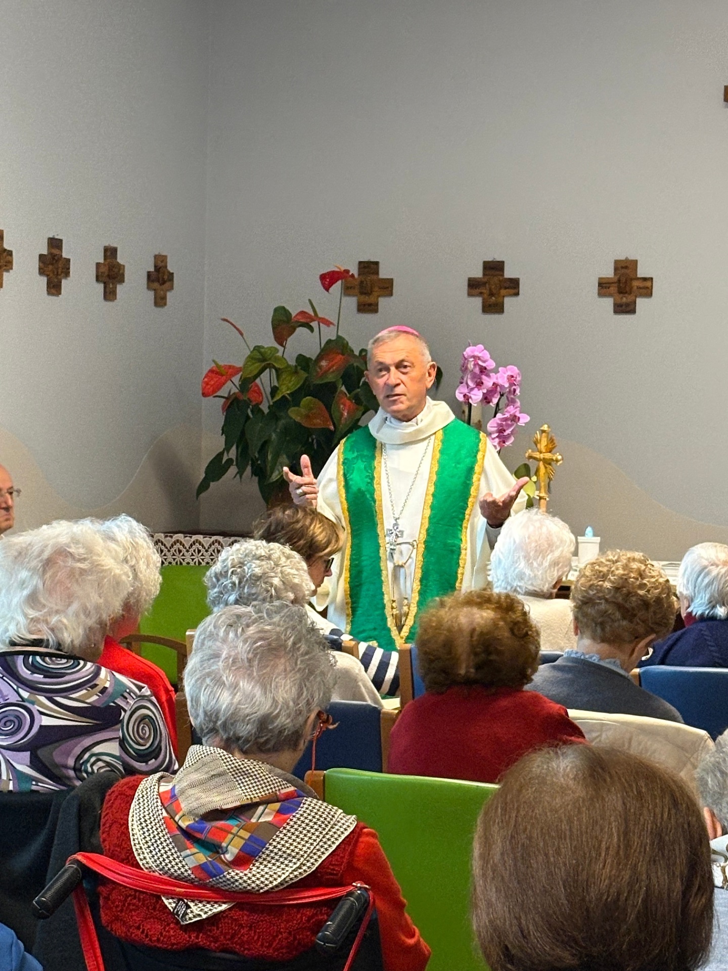 Durante la messa, il vescovo ha voluto soffermarsi sul tema della vecchiaia come tempo di riflessione e di grazia, invitando gli anziani a vivere ogni giorno come un dono, offrendo le proprie preghiere per la famiglia, per la pace nel mondo e per le missioni. Con parole semplici e profonde, ha ricordato che “ogni vita, anche nella fragilità, è preziosa agli occhi di Dio.