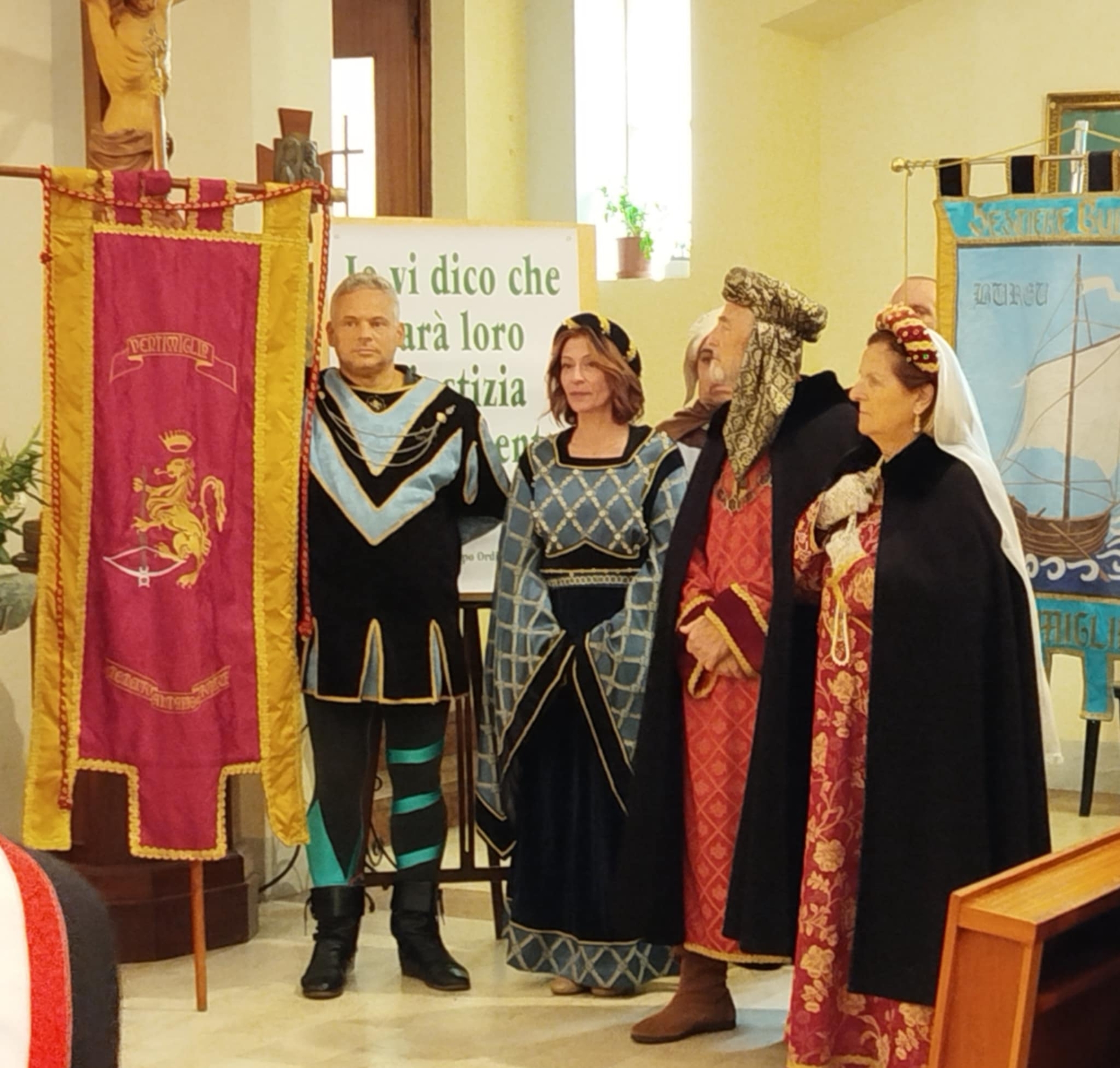 Successivamente, i partecipanti si sono trasferiti in auto verso il Capoluogo, dove una seconda sfilata ha percorso le vie del centro storico, dalla Torre di guardia fino all’antico Palazzo Comunale, rievocando con eleganza e fascino le atmosfere del passato.