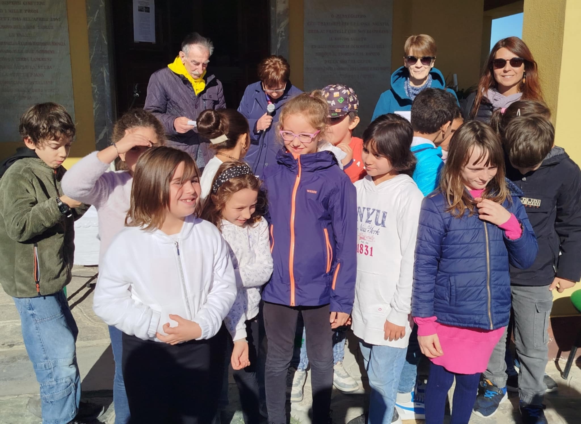 Elementari Bastia: Prima classe (un grande simpatico tabellone su "i coniglietti della pace"). Classe seconda, storie istruttive e riccamente illustrate di Federico, topino di campagna. Classe quarta, un cartellone con sassolini e scritte su pace, coraggio, resistenza, futuro. Classe quinta, i ribelli della montagna, con suggestivo audio.