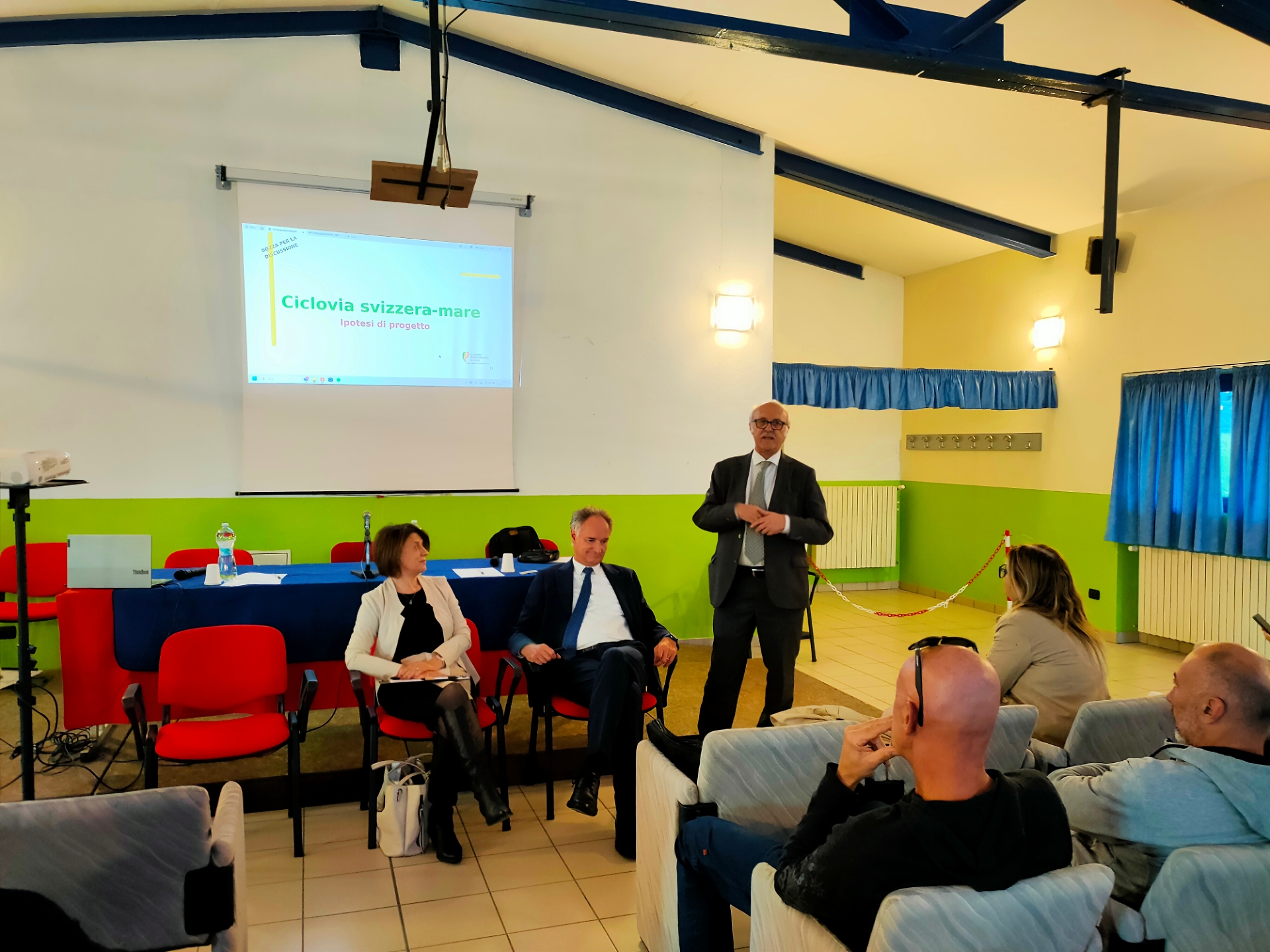 «Le due Atl hanno iniziato a lavorare insieme su alcuni progetti, tra cui il "Wow" finanziato dalla Fondazione CRC e finalizzato alla valorizzazione del mondo outdoor» ha detto Bertero, ripercorrendo quanto fatto e citando anche i progetti interrail. «Il mercato del nord Europa è molto orientato sul cicloturismo. Vi porto un dato: all'inizio la zona di interesse di una ciclovia era di qualche centinaia di metri, adesso parliamo di chilometri: ergo l'indotto di una ciclovia ha allargato molto l'area dei pernottamenti. C'è anche una bella fetta di pubblico, over 50, che ama viaggiare in compagnia, ama farlo con tour operator e si muove in modo organizzato. Si prende un furgone e un carrello, c'è un autista e si costruisce un gruppo, anche con bici elettriche, che si muove per 60-70 km. Questa è una tendenza della zona mitteleuropea». Bertero ha presentato il progetto della Ciclovia Svizzera-mare, ovvero una strada che attraversa diverse nazioni e tocca diverse dorsali interessanti: «Parte da Locarno, attraversa la Svizzera per 50 km toccando una serie di percorsi ad anello, poi fa 300 km in Piemonte, 80 km il Liguria e 40 in Francia». «Tutta una serie di azioni sono già state sviluppate – ha spiegato Bertero – diversi territori si sono già attrezzati per il mondo bike ed e-bike. La nostra area grazie al Piter Paysage avrà l'opportunità di dotarsi di comunicazione e promozione in merito a questo. Quello che noi andremo a sviluppare e coordinare sarà attivare un sito web, fare promozione, commercializzazione e formazione. Il progetto Bikeland parlava di un territorio atto ad accogliere il mondo dei turisti della bicicletta. Sappiamo cosa vogliono questo tipo di turisti: mettiamoglielo a disposizione».