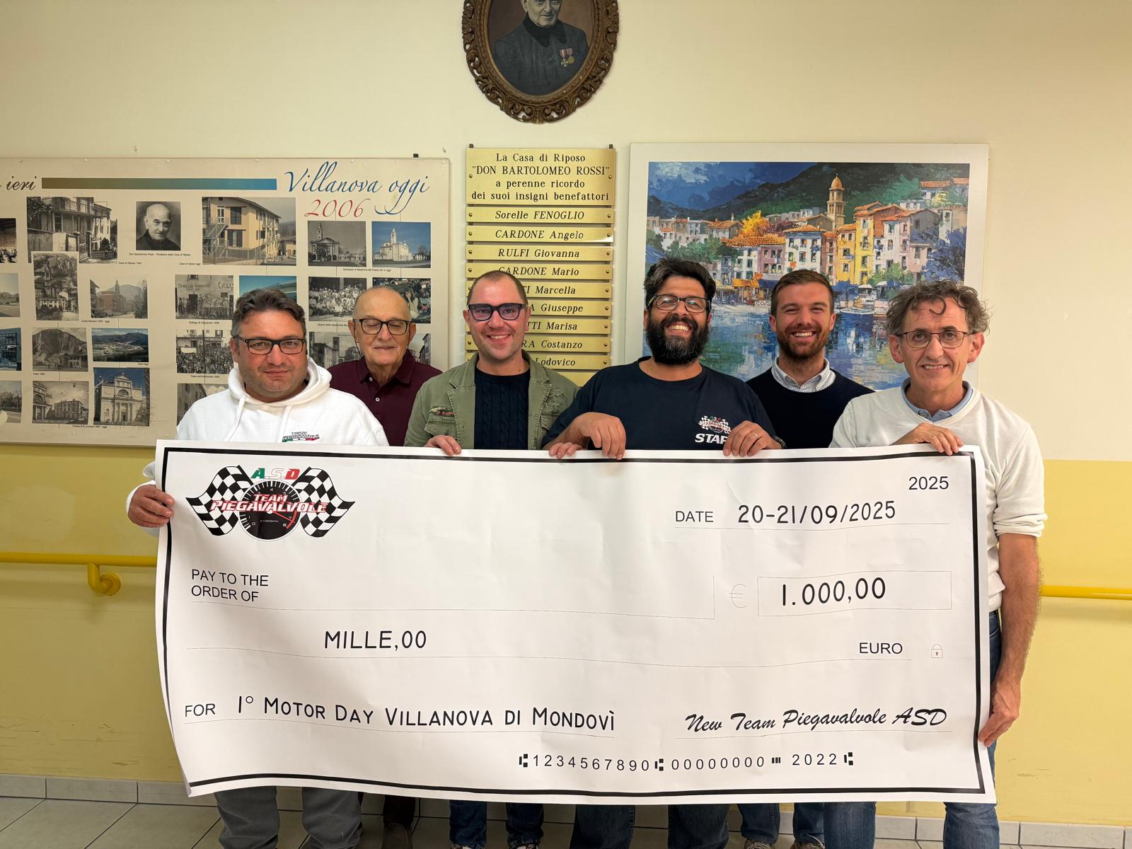 «Un sentito grazie – commenta l'Amministrazione villanovese – al team “Piegavalvole” per la sua disponibilità ad organizzare materialmente e anche in termini di responsabilità l’evento: un gruppo affiato e guidato dalla passione per i motori, ma sempre con un occhio di riguardo verso la solidarietà». Grazie alle iscrizioni dei partecipanti sono stati raccolti 2.000 euro interamente devoluti in beneficenza: 1.000 euro sono stati destinati alla Casa di riposo “Don Rossi” di Villanova Mondovì e 1.000 euro al reparto di Pediatria dell’ospedale di Mondovì. Un gesto semplice che vuole sottolineare come le passioni comuni, le amicizie e la collaborazione di un territorio possano fare del bene. «Infine, un doveroso ringraziamento a tutti i volontari che hanno aiutato e sostenuto l’iniziativa, oltre agli sponsor privati Autoriparazioni Lanza, Az Trade srl, Roberi Aurelio Termoidraulico, Lotario Sergio Soccorso stradale, Eula e Bessone, Asvego, Casa vacanze La Perla, Siber Costruzioni, Ballario Trasporti srl, CTI srl, Cartiera di Torre Mondovì».