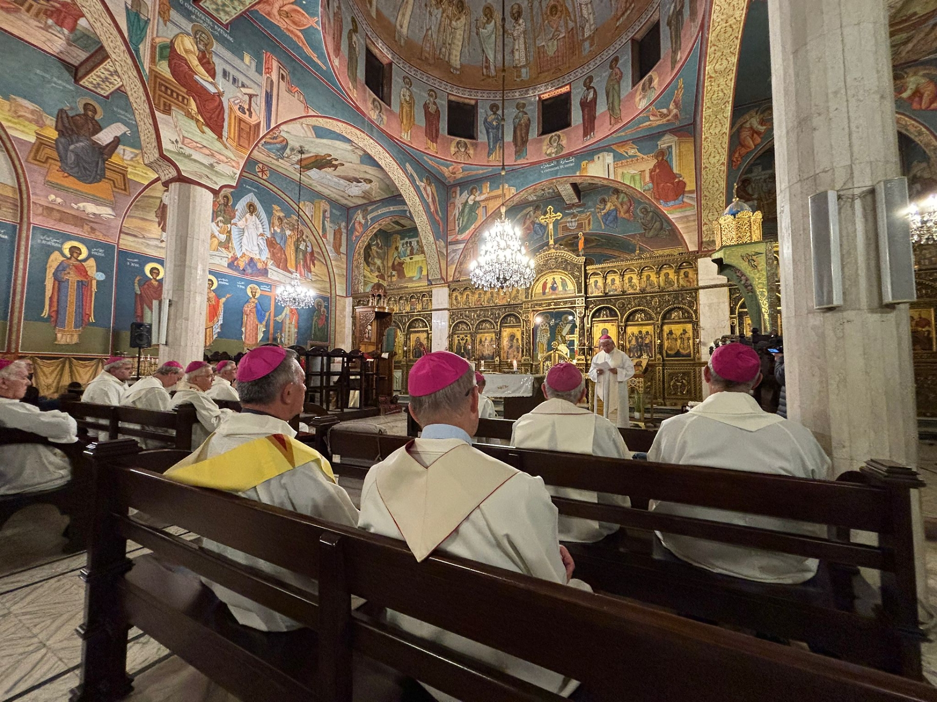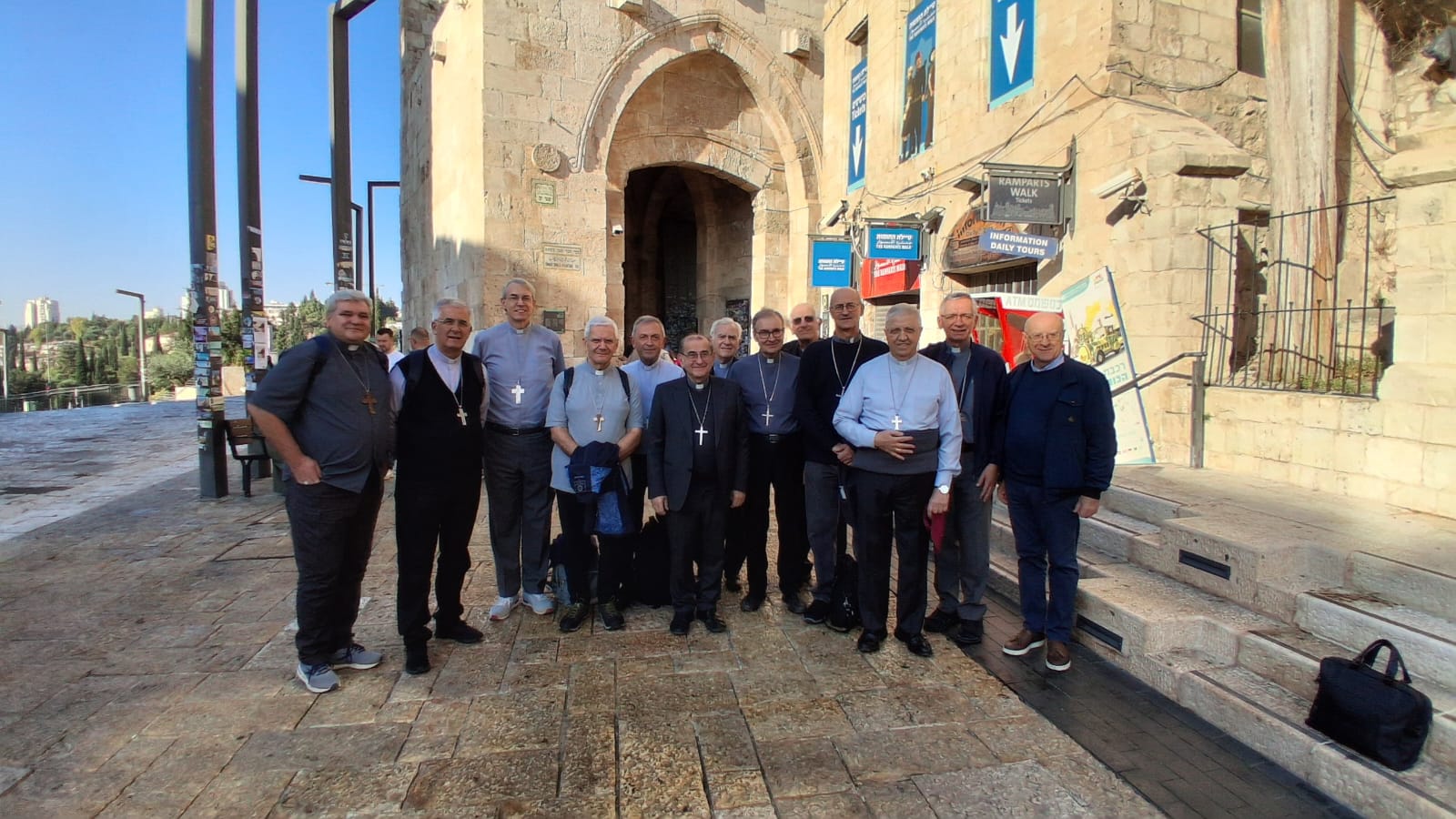 È iniziato ufficialmente nella giornata di lunedì 27 ottobre il pellegrinaggio del Vescovo di Mondovì, mons. Egidio Miragoli, in compagnia dei Vescovi della Conferenza episcopale lombarda, ospitata quest’estate presso il Santuario di Vicoforte. Insieme a mons. Egidio è presente anche don Federico Boetti. Arrivati in serata a Gerusalemme i Vescovi hanno concelebrato insieme l’Eucaristia presso la Chiesa dei Melchiti per poi incontrare i sacerdoti, i religiosi e i laici originari della Lombardia che lavorano a Gerusalemme.