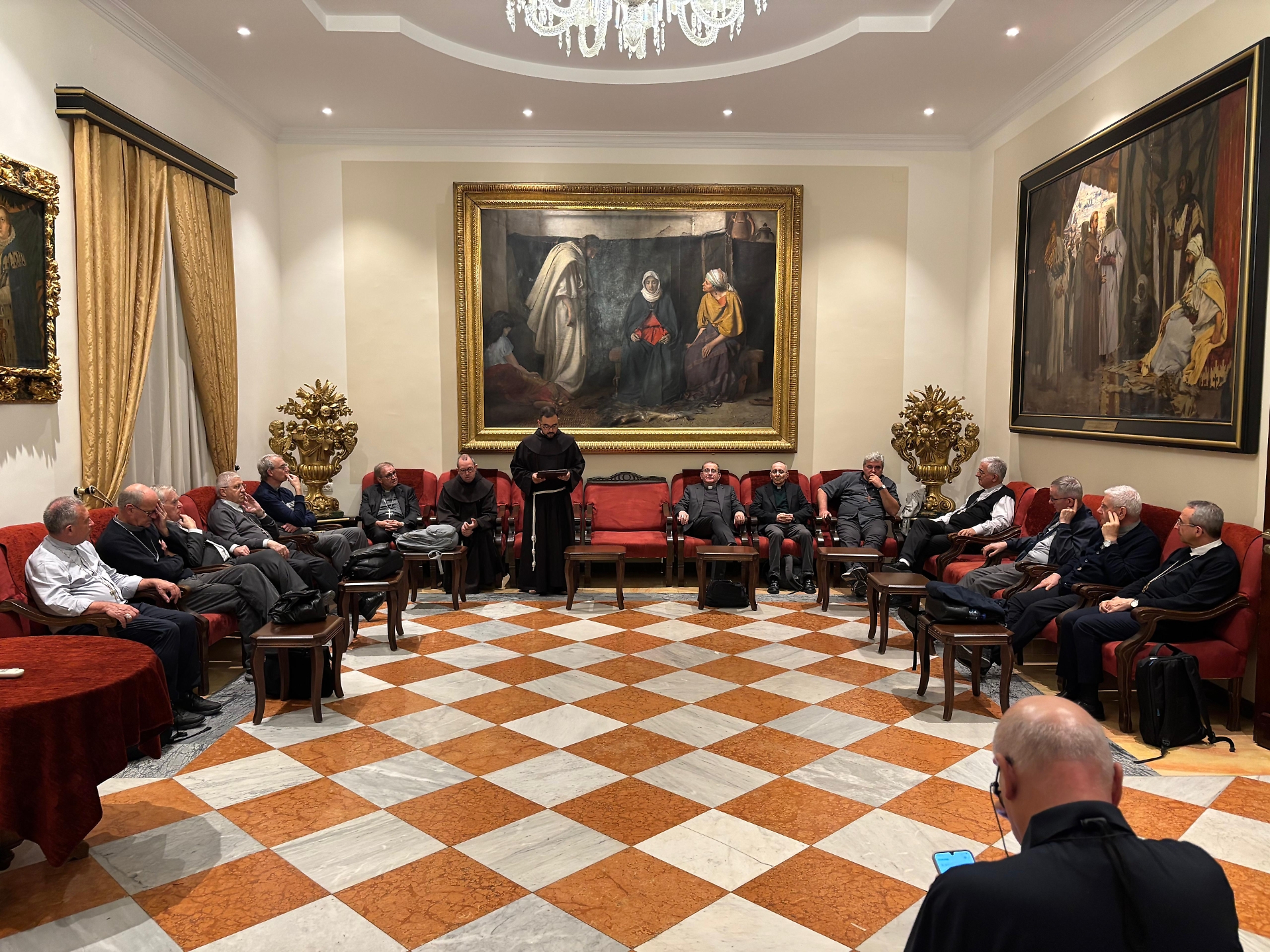 I Vescovi poi si sono spostati presso la comunità cattolica di lingua ebraica presente a Gerusalemme, una realtà piccola, povera e con pochi mezzi. Don Benedetto Di Bitonto, prete originario dell’Italia, ha comunicato la difficoltà di operare nel contesto attuale. Da una parte il popolo ebraico vive un trauma collettivo nei confronti del cristianesimo che per millenni ha coinciso con il dominatore. Pertanto, la comunità cristiana, essendo piccola e povera, non spaventa e può favorire l’adesione alla fede in Gesù. Dall’altra parte l’attuale situazione scoppiata da due anni a questa parte presenta una sfida enorme per la stessa comunità che si trova a dover accompagnare persone che magari si sono macchiate di crimini, familiari che hanno perso gli ostaggi. Il tutto senza cadere nelle polarizzazioni che portano a sostenere solo una parte a discapito dell’altra. Tuttavia, nonostante le difficoltà, la scorsa settimana, questa piccola realtà è riuscita ad organizzare un festival per giovani che ha coinvolti circa 200 arabi e israeliani cristiani. Un piccolo segno per mostrare che esistono due polmoni nella stessa Chiesa.