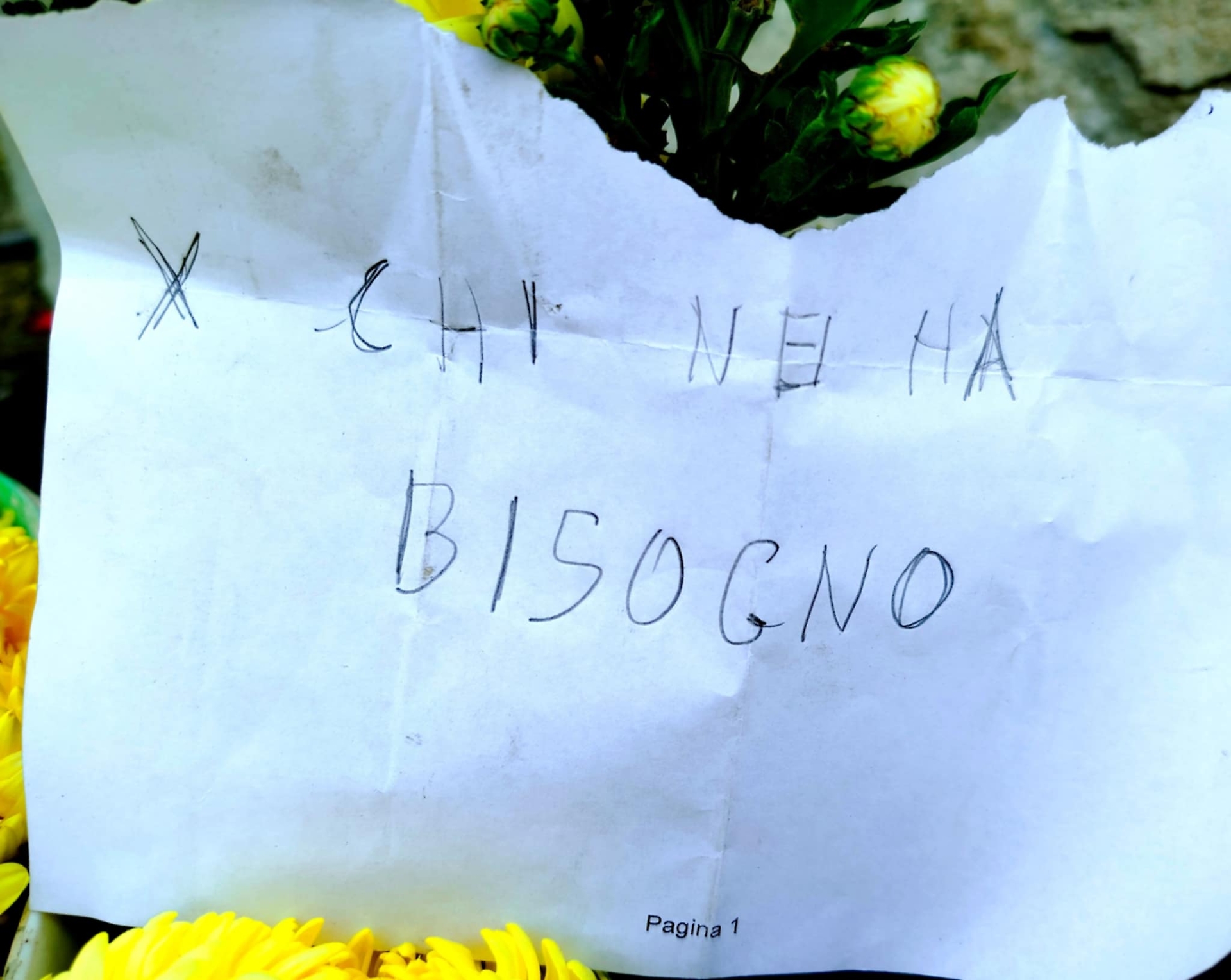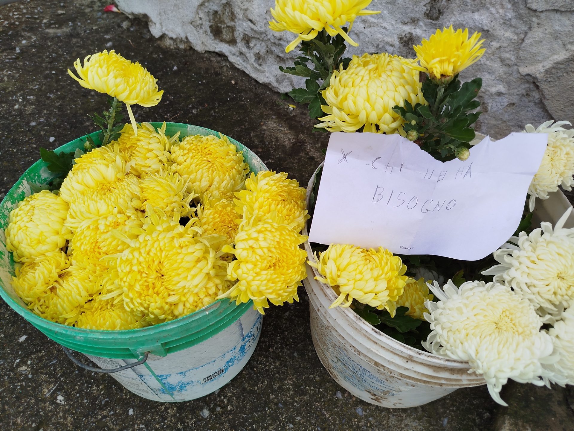 In un tempo in cui la frenesia spesso lascia poco spazio all’attenzione per gli altri, questo piccolo atto di altruismo ci ricorda che la solidarietà può manifestarsi anche nei modi più umili: un secchio di crisantemi e una frase scritta a mano.