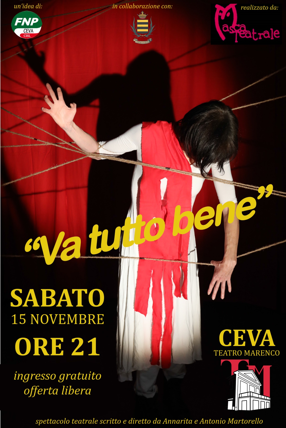 Sabato 15 novembre, sul palco cebano, andrà in scena “Va tutto bene”, una produzione di Mascateatrale, scritta e diretta da Annarita e Antonio Martorello.