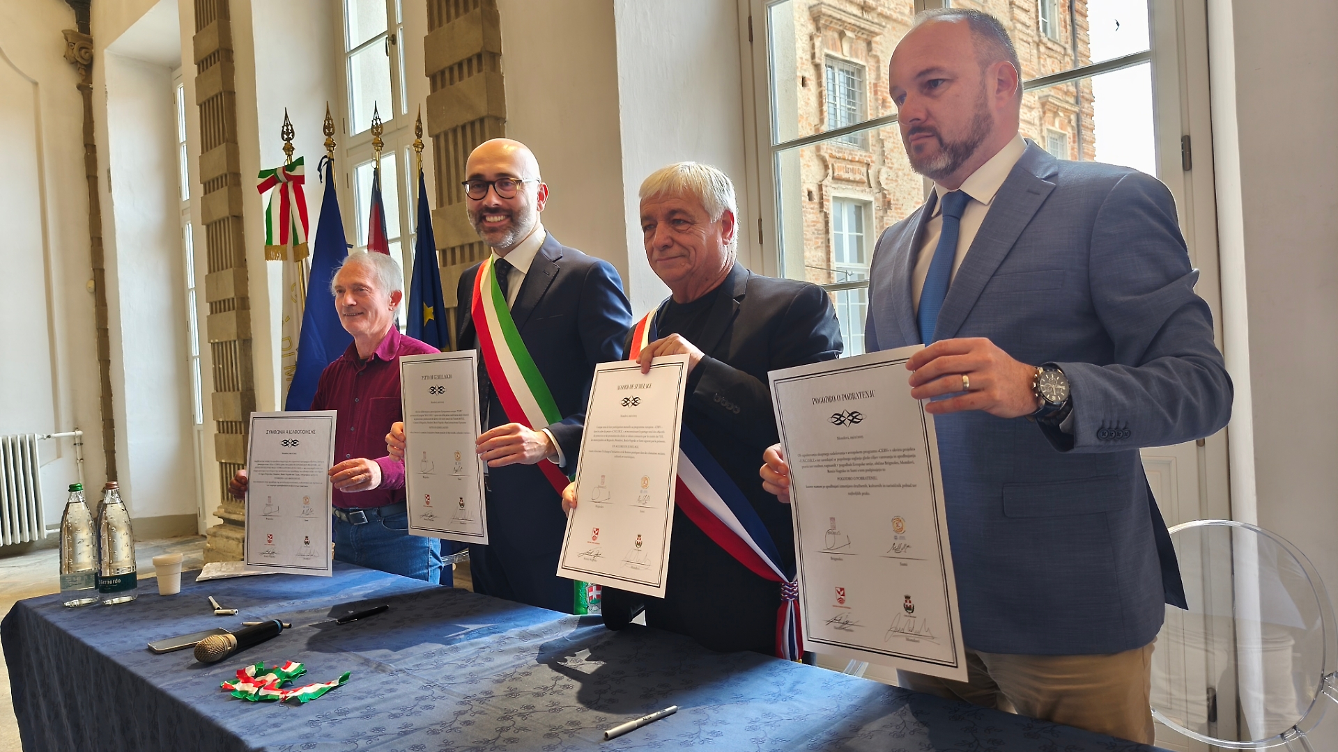 È stato sottoscritto questa mattina, 9 novembre - data non causale: è l'anniversario della caduta del Muro di Berlino - , il Patto di gemellaggio fra le quattro comunità: "Alla luce della reciproca partecipazione al programma europeo “CERV” per mezzo del progetto “E.N.C.O.R.E.” e preso atto della piena condivisione degli obiettivi di protezione e promozione dei diritti e dei valori sanciti dai Trattati dell'UE, i Comuni di Brignoles, Mondovì, Renče-Vogrsko e Sami sottoscrivono il presente PATTO DI GEMELLAGGIO volto a favorire lo scambio di iniziative e buone pratiche di tipo sociale, culturale e turistico".