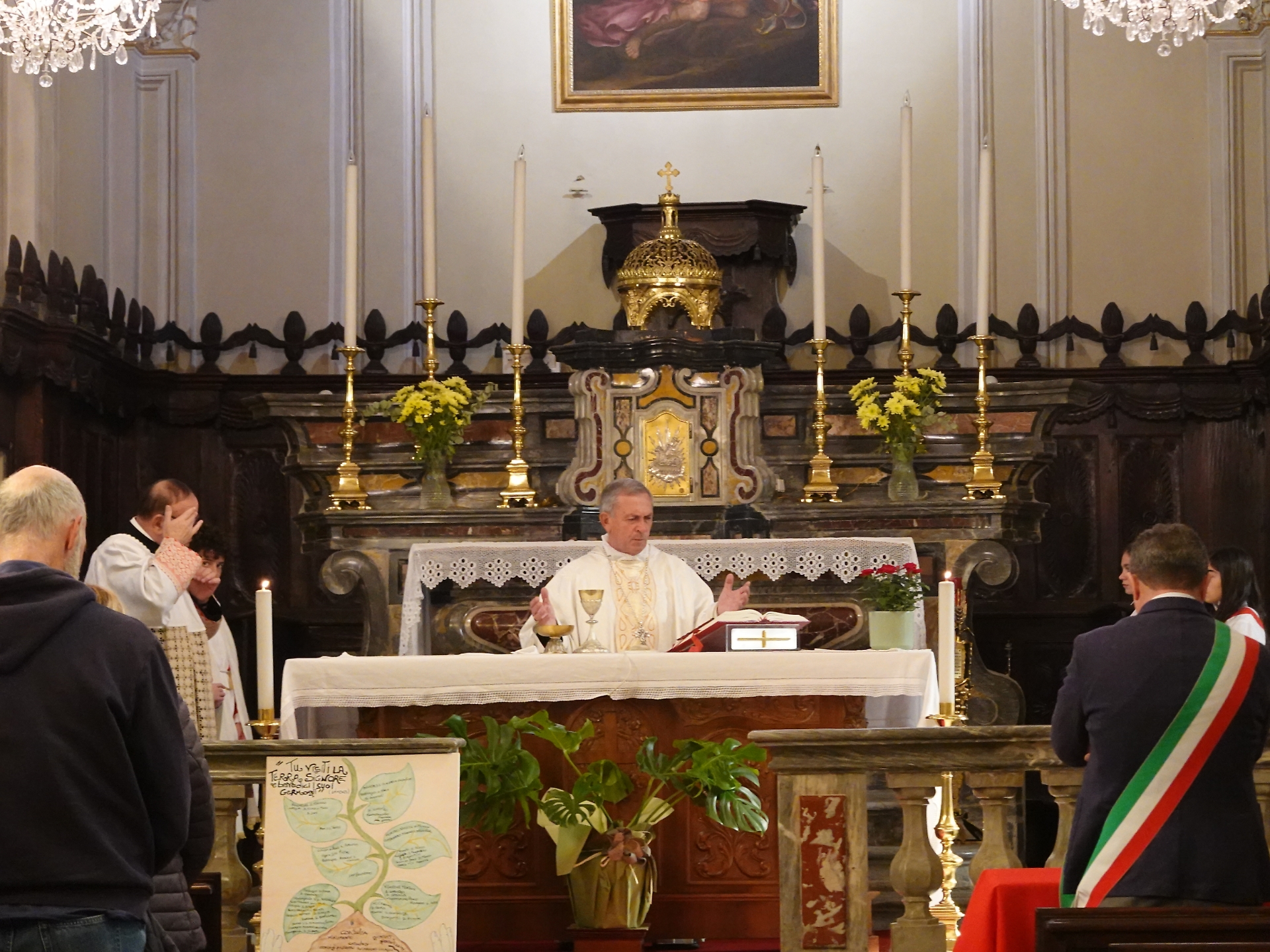 Nell'omelia monsignor Miragoli ha ricordato la festa della Dedicazione della Basilica di San Giovanni in Laterano: «La liturgia di oggi ci fa celebrare una festa un po' particolare che cade sempre il 9 novembre. Questa è un'occasione per ricordare il giorno della Consacrazione di quella che è considerata la chiesa madre di tutte le chiese: la Basilica di San Giovanni in Laterano. E questa circostanza permette di toccare un tema che è strettamente connesso con la visita pastorale. Dalle letture si parte dalla celebrazione della chiesa fatta di pietre, per arrivare alle pietre vive che sono i cristiani e la comunità. La visita pastorale del vescovo è proprio un momento fatto di incontri, di presenza e comunicazione. La presenza del vescovo vuole essere un sostegno alla comunità cristiana».