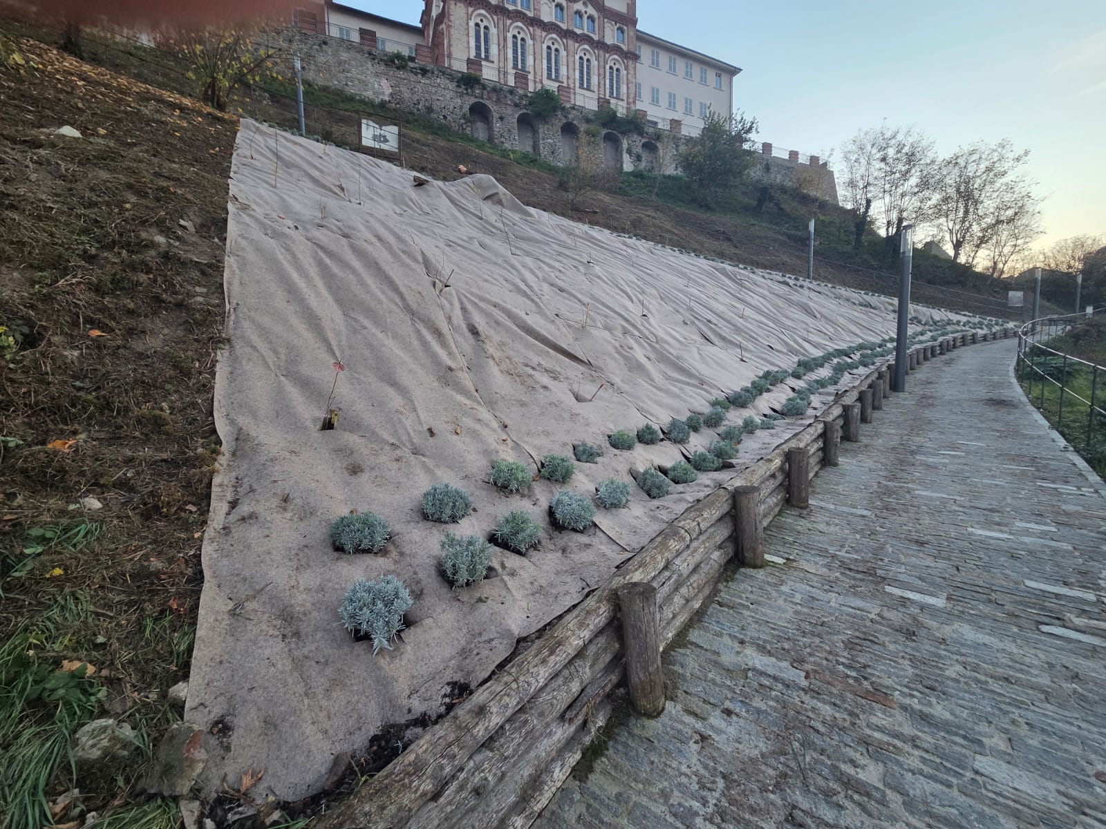 - Riprofilatura del versante e consolidamento del muro di contenimento del Sacra Famiglia.