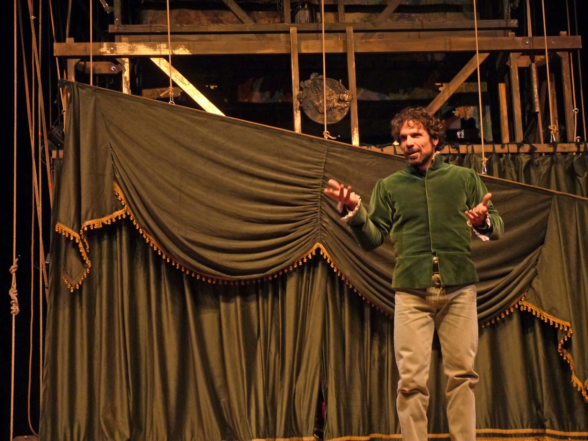 Il tutto su un palco da reggere interamente da solo, con uno spettacolo tutto sulle proprie spalle e su di una curiosa "macchina" teatrale, che l'attore ha alle spalle e con cui gioca, tra sipari e attrezzistica varia. Il pezzo è un banco di prova per l'interprete ma anche un colossale atto d'amore nei confronti del teatro e soprattutto di chi lo fa, un omaggio all'arte della recitazione vissuta in maniera corsara, ambiziosa, al di là di ogni intellettualismo.