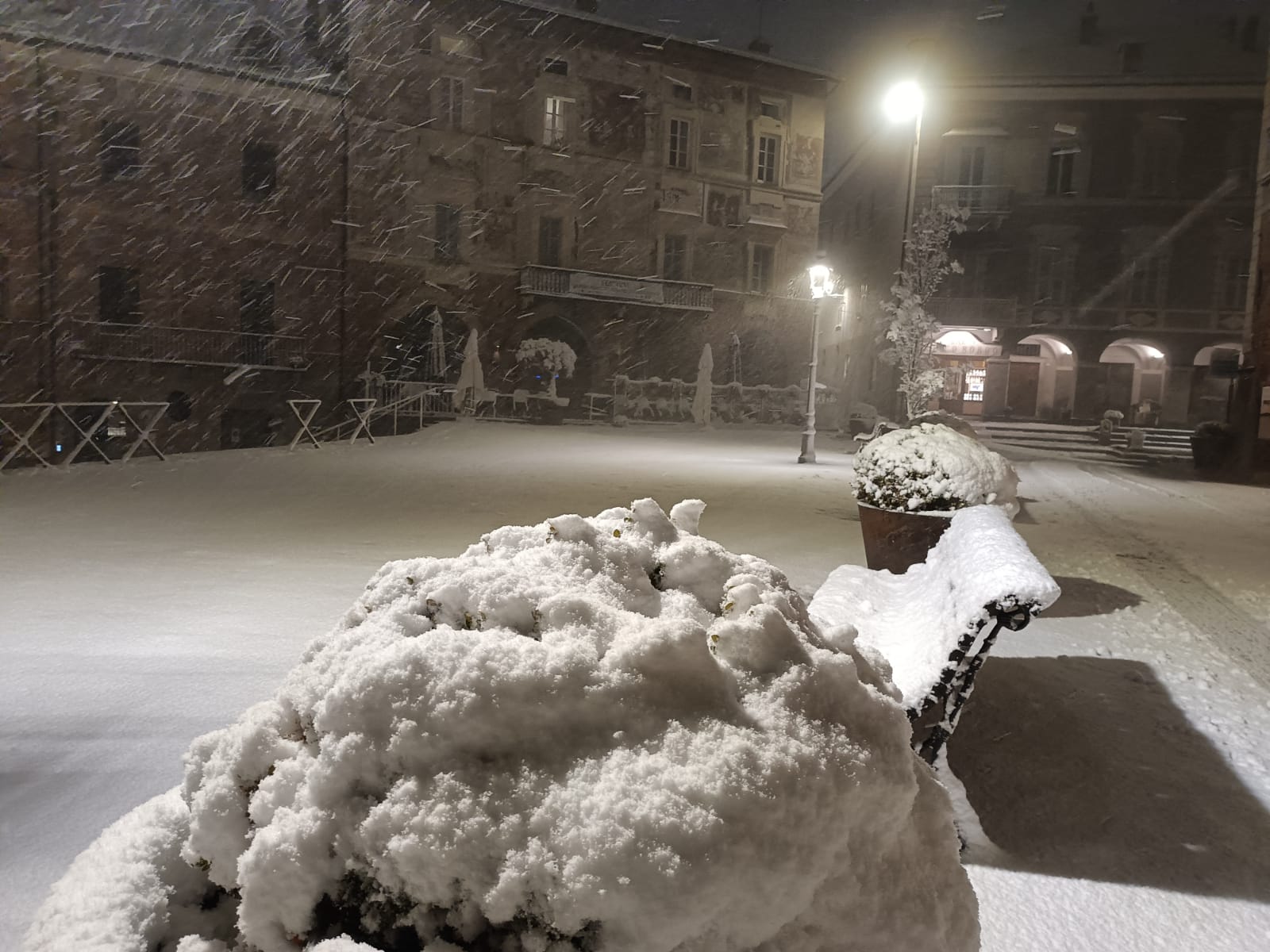 Sono sempre suggestive le foto di Mondovì Piazza sotto la neve. La nevicata di ieri, che si è interrotta fra la sera e la notte, non ha causato problemi.