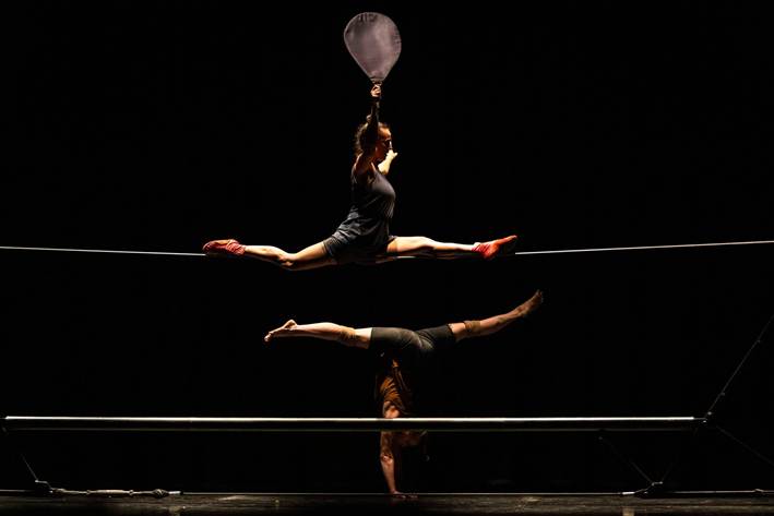Lo spettacolo combina tecniche di filo teso, giocoleria, antipodismo con clave, verticali e coreografie di danza, costruendo una drammaturgia fisica fatta di equilibrio, delicatezza e intensità. Il palco diventa lo spazio in cui un legame profondo prende forma: un filo invisibile che unisce, ricuce ferite, crea presenza e restituisce la potenza dell’incontro tra due donne.